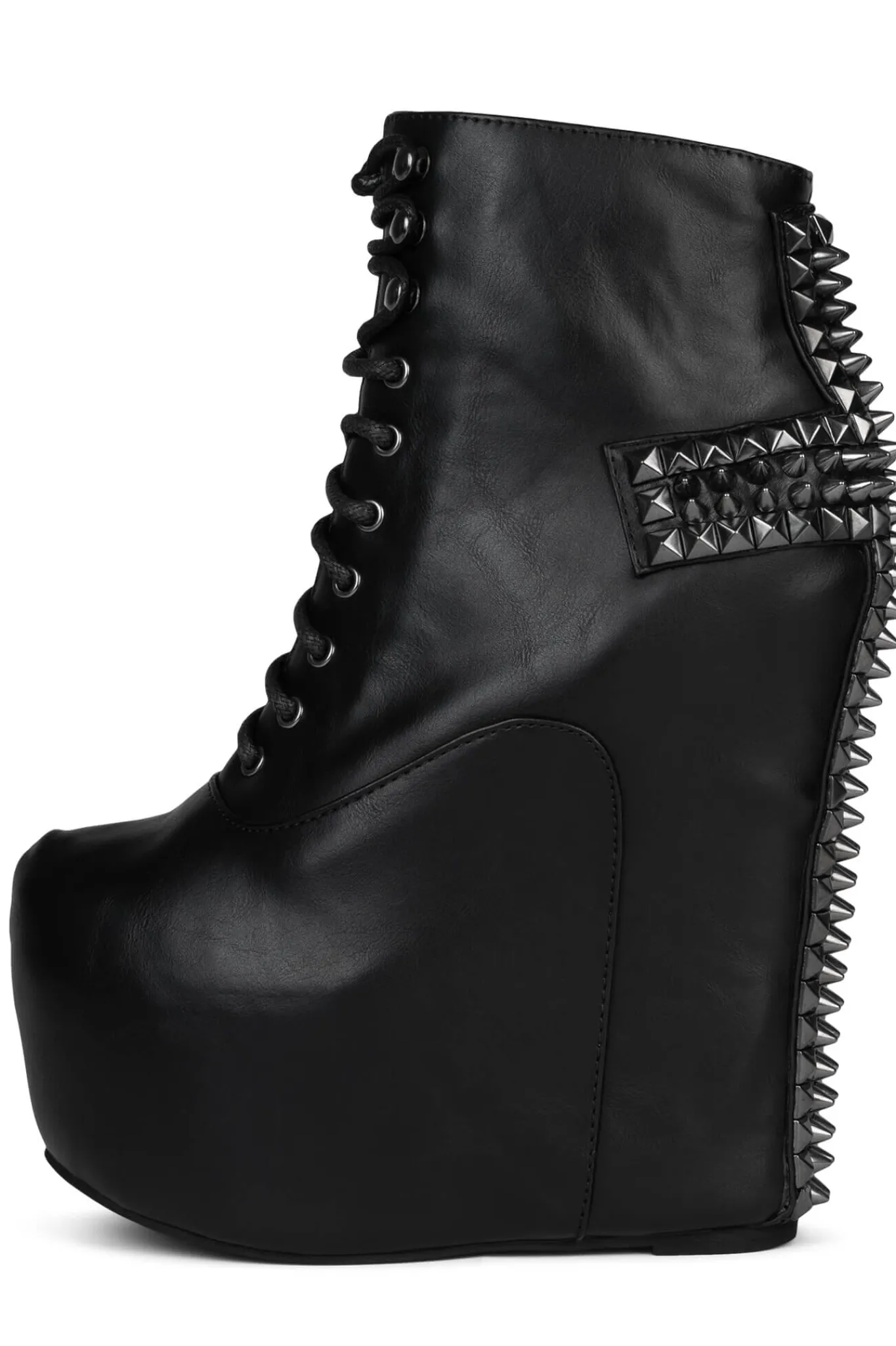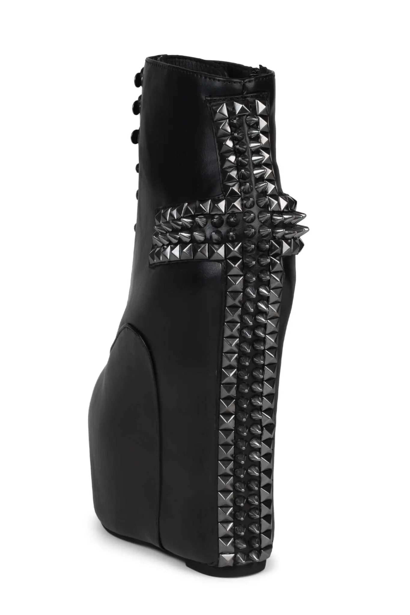 Lace-up platform wedge boot with spiked cross detail