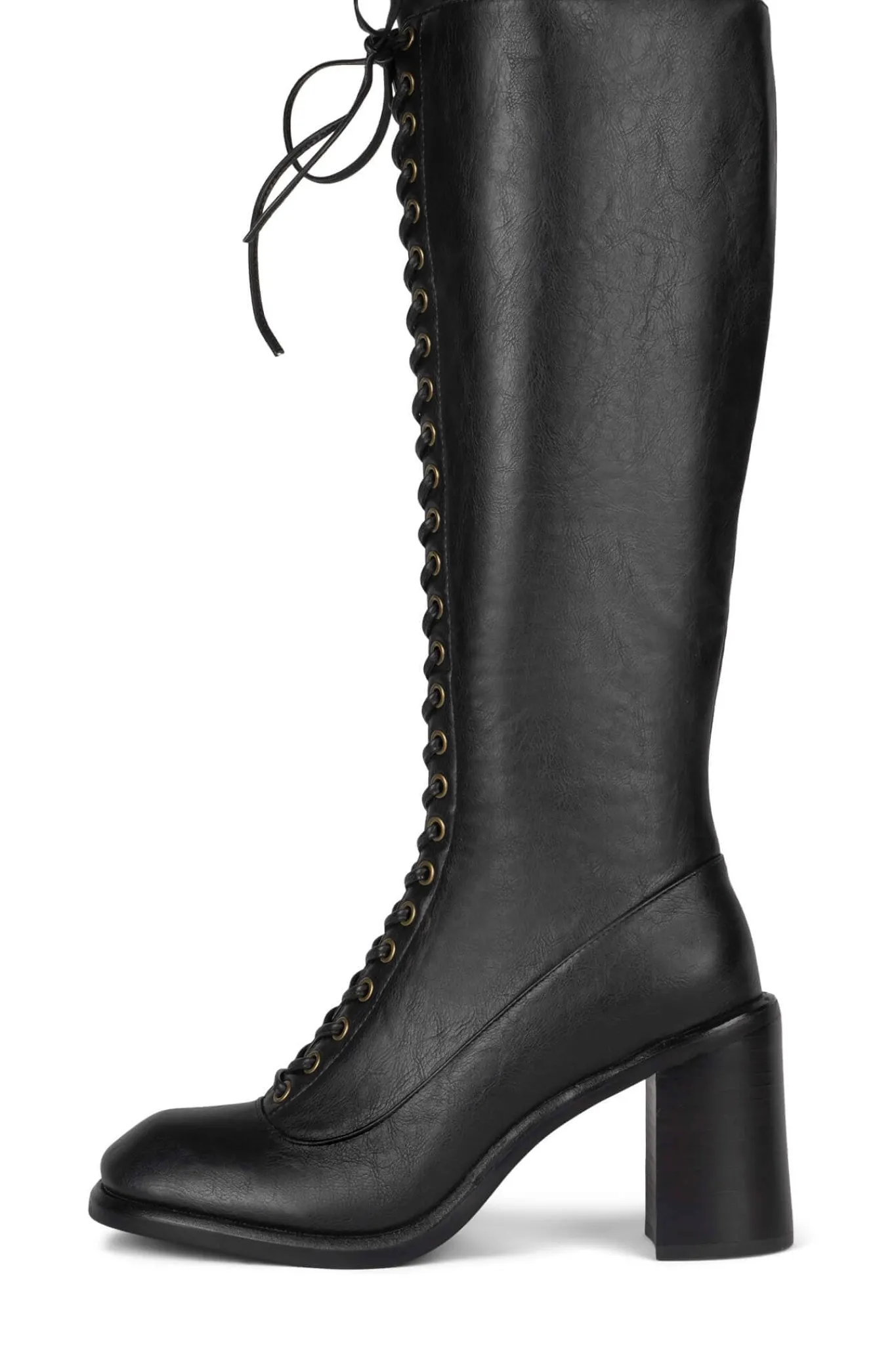 Lace-up knee-high boot with block heel