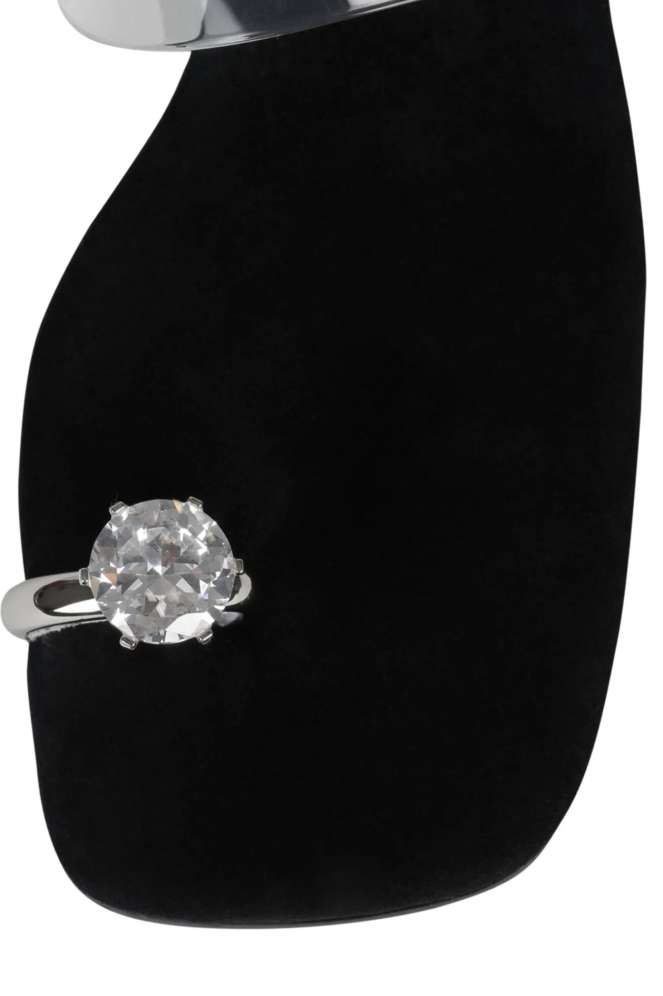 Kitten heel sandal with clear vinyl strap & embellished toe-ring