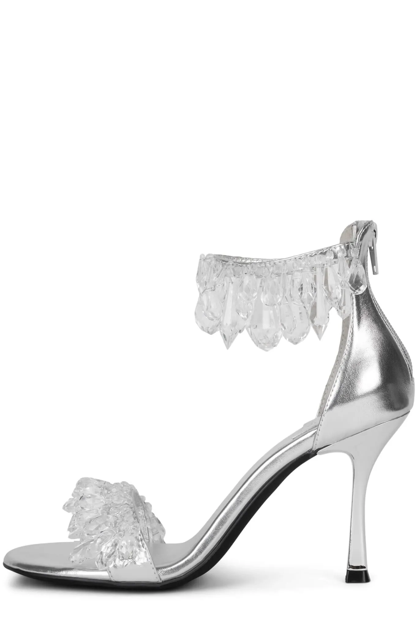 Heeled sandal with beaded ornaments