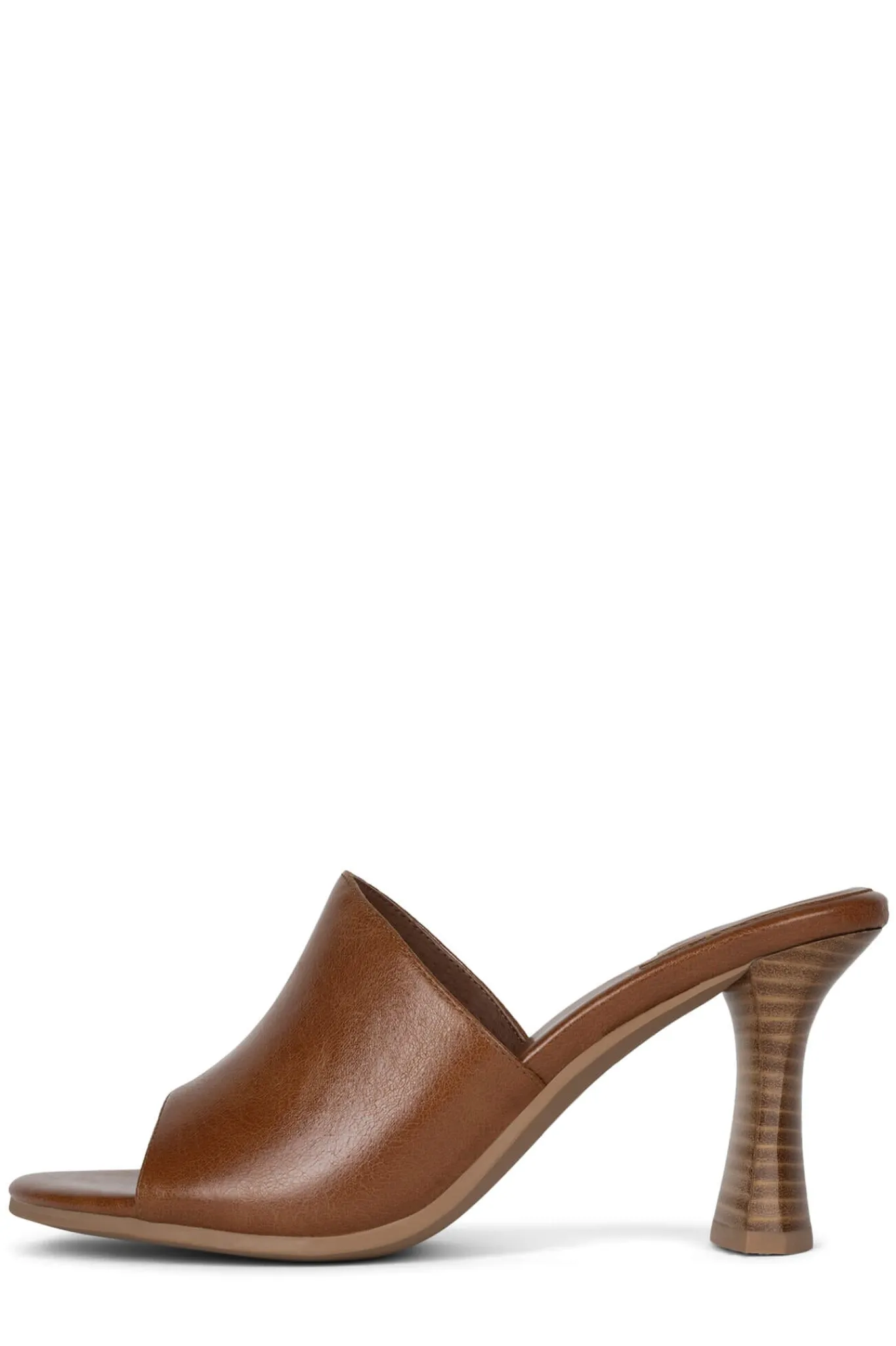 Round-toe, mid-heel wide vamp slide.