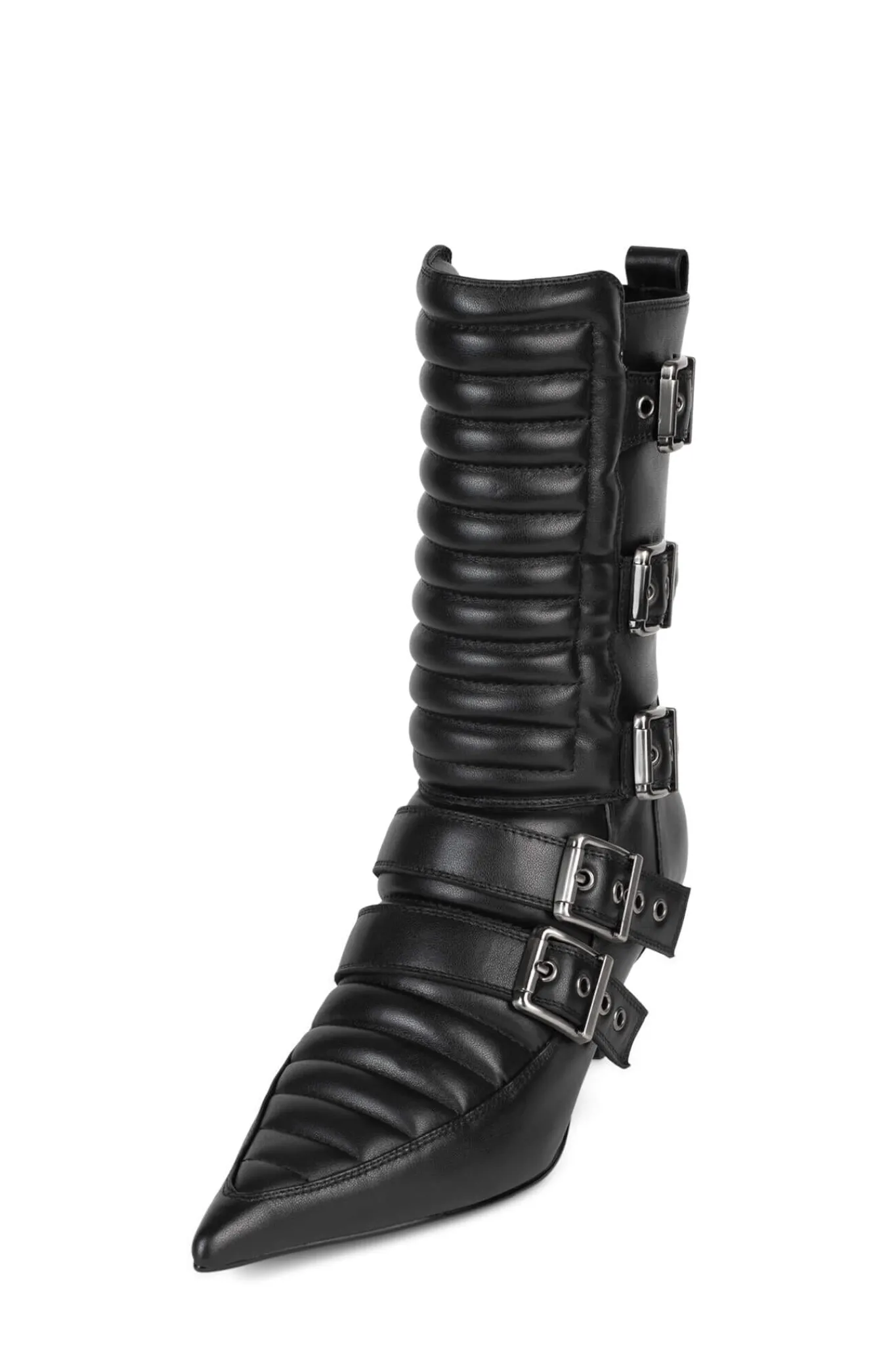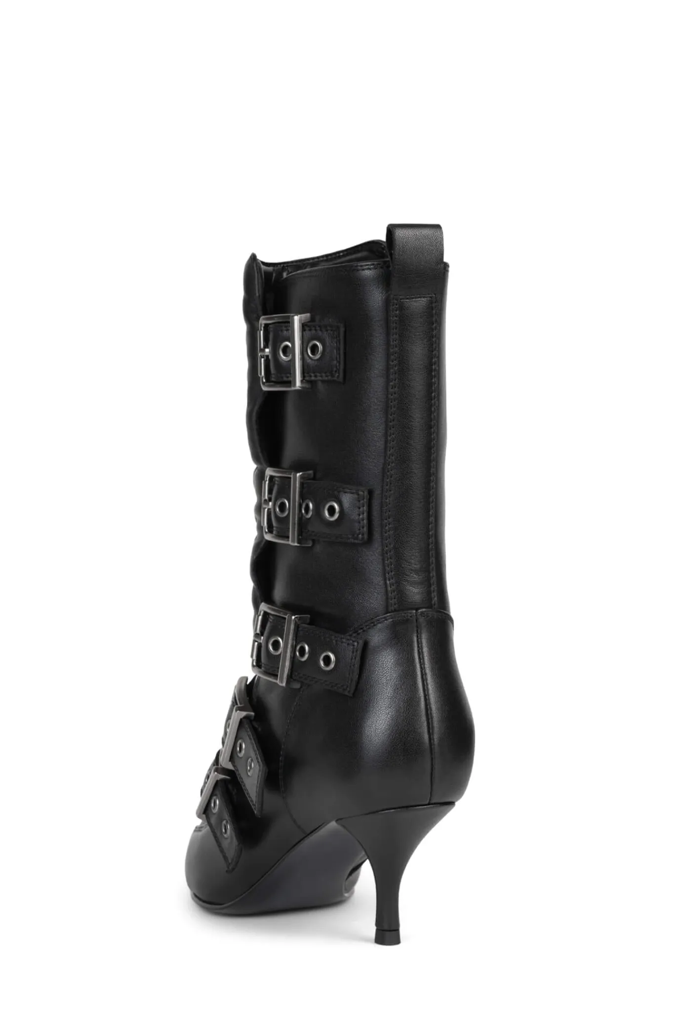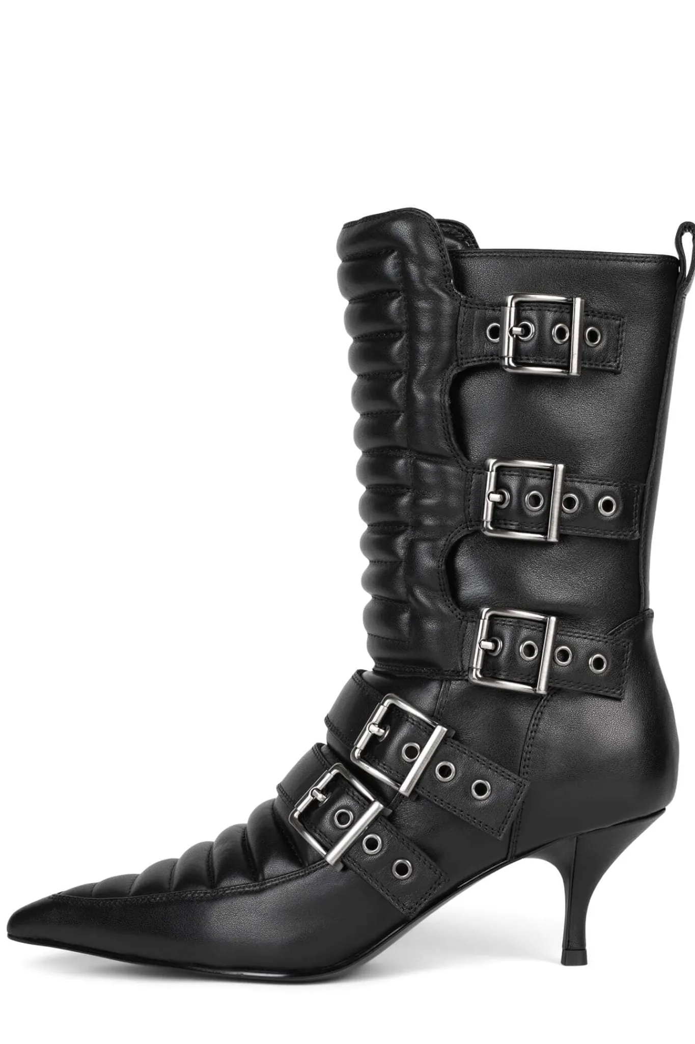 Kitten heel mid-calf moto-inspired bootFits true to sizeMeasurements taken from a size 7 2.25″ Heel, 0.25″ Platform8.5″…