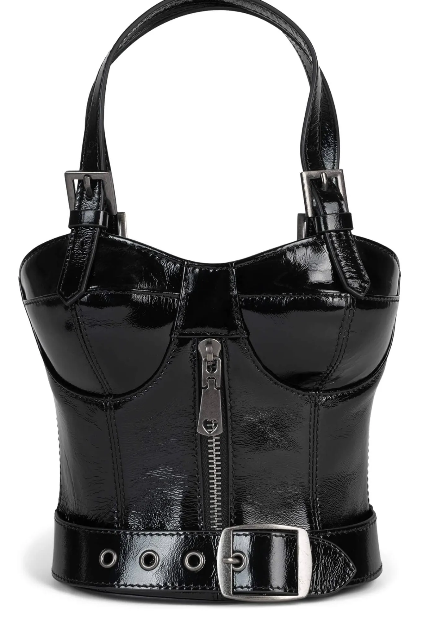 Moto-inspired bodice handbag with zipper closure. Pairs perfectly with our LIORA stiletto pump.11.5″ Height, 8″ Width, 6…