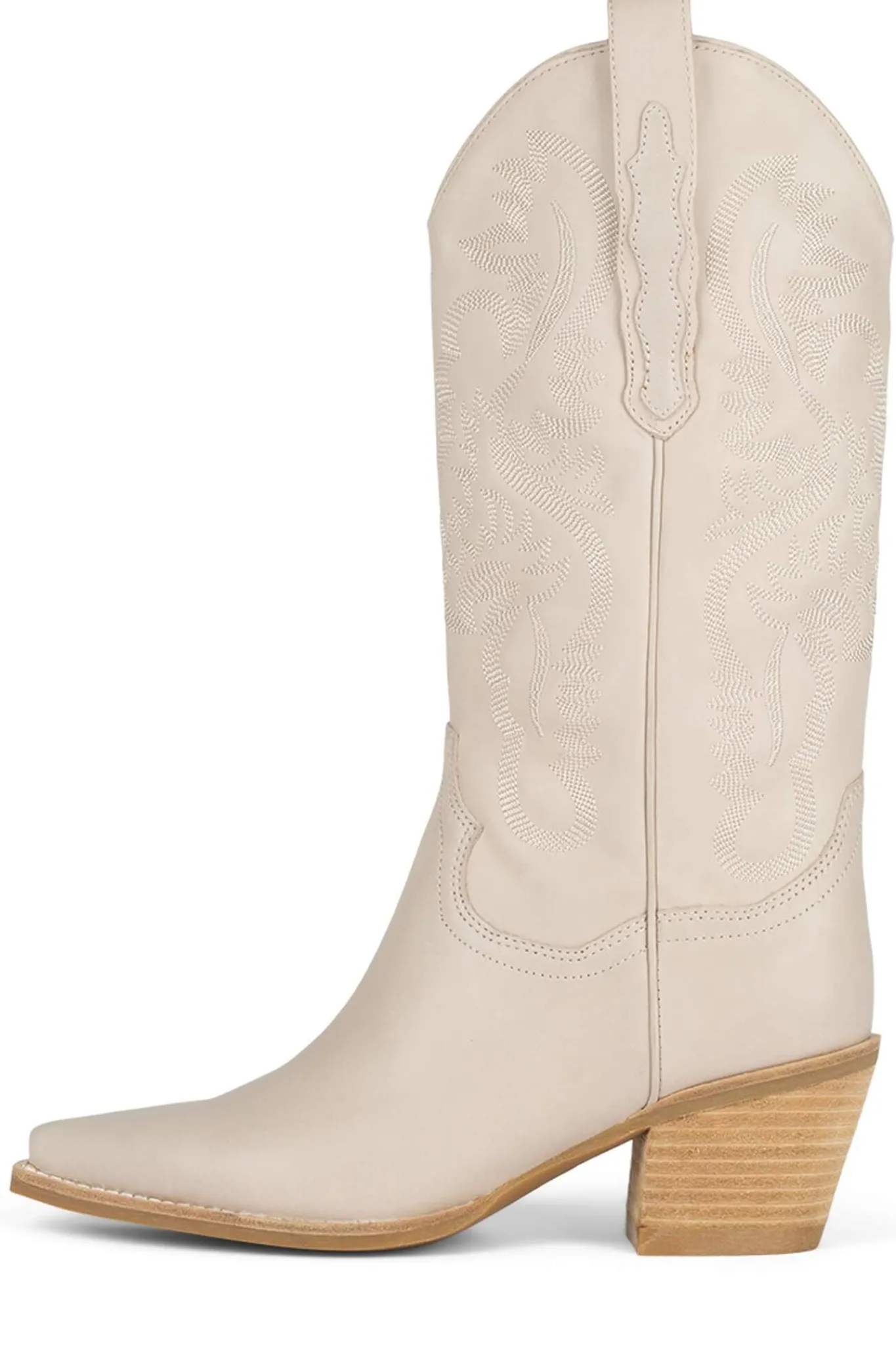 Mid-calf western heeled boot.Fits true to sizeMeasurements taken from size 72.5″ heel12″ shaft, 14″ leg openingLeather u…