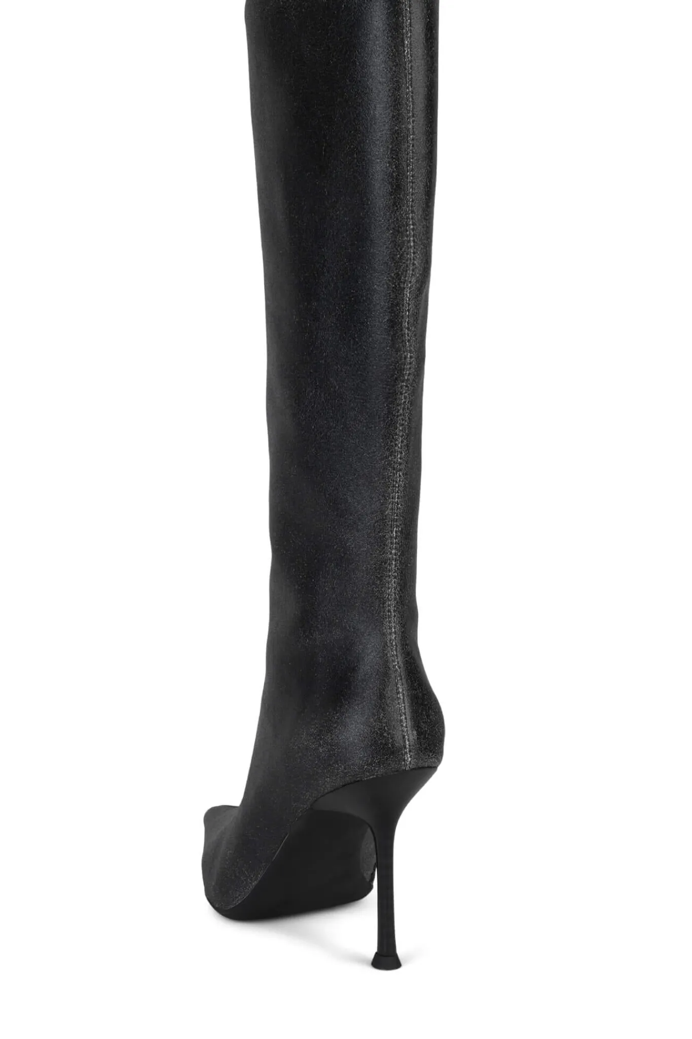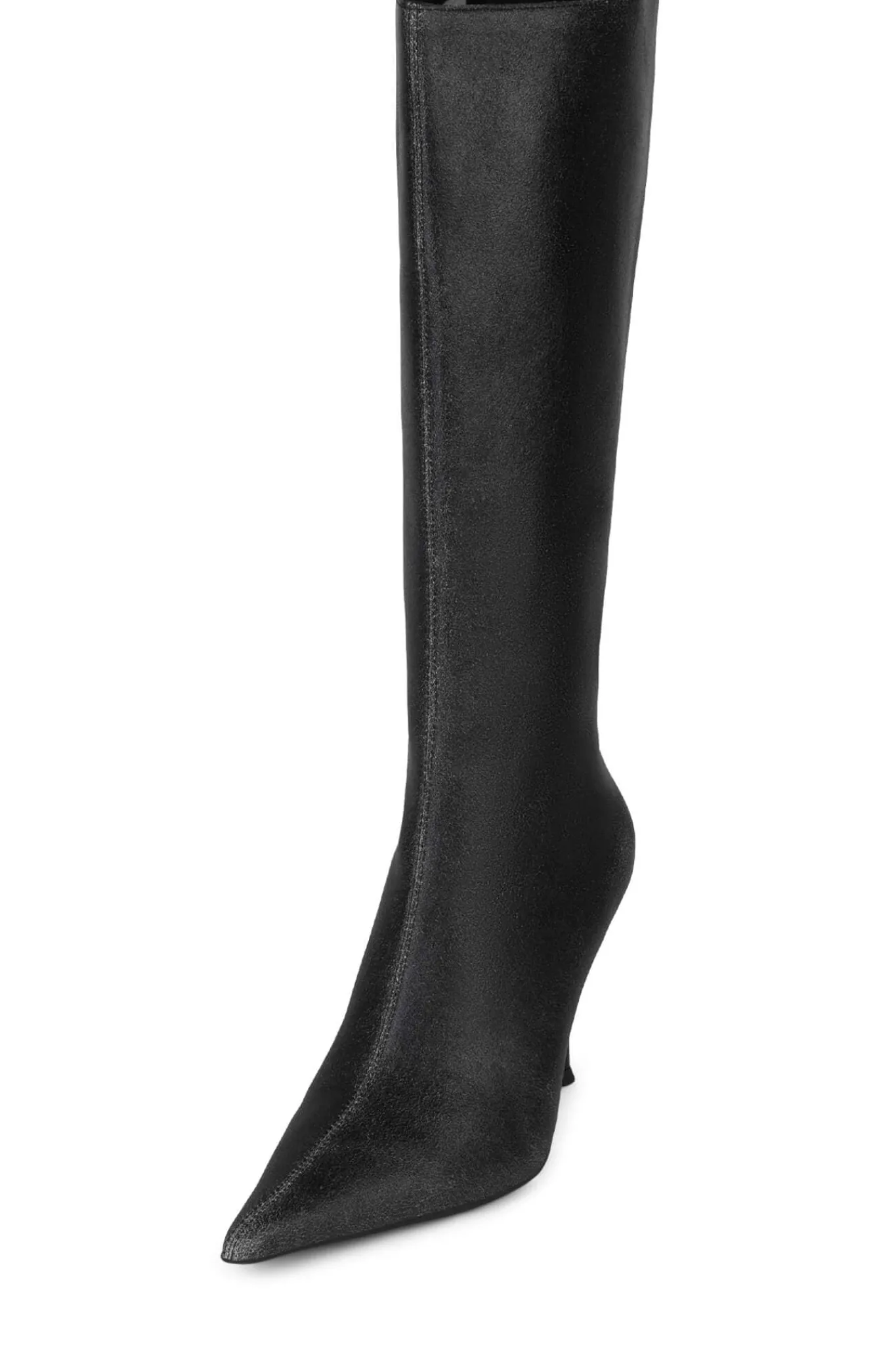 Knee-high pointed-toe stiletto boot.Fits true to sizeMeasurements taken from a size 7 3.75″ Heel, 0.25″ Platform13.5″ S…