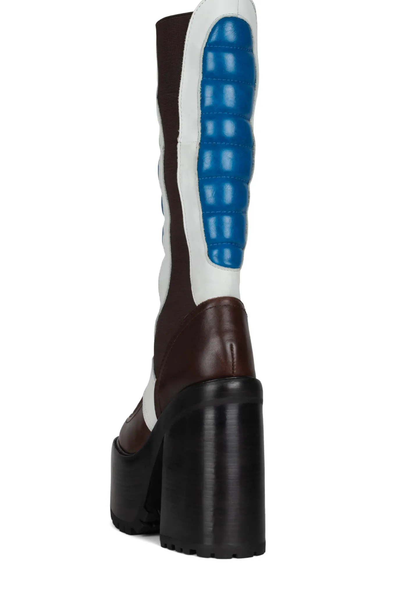 Moto-inspired knee-high boot with chunky platform heelFits true to sizeMeasurements taken from a size 75.5″ Heel, 2.5″ P…