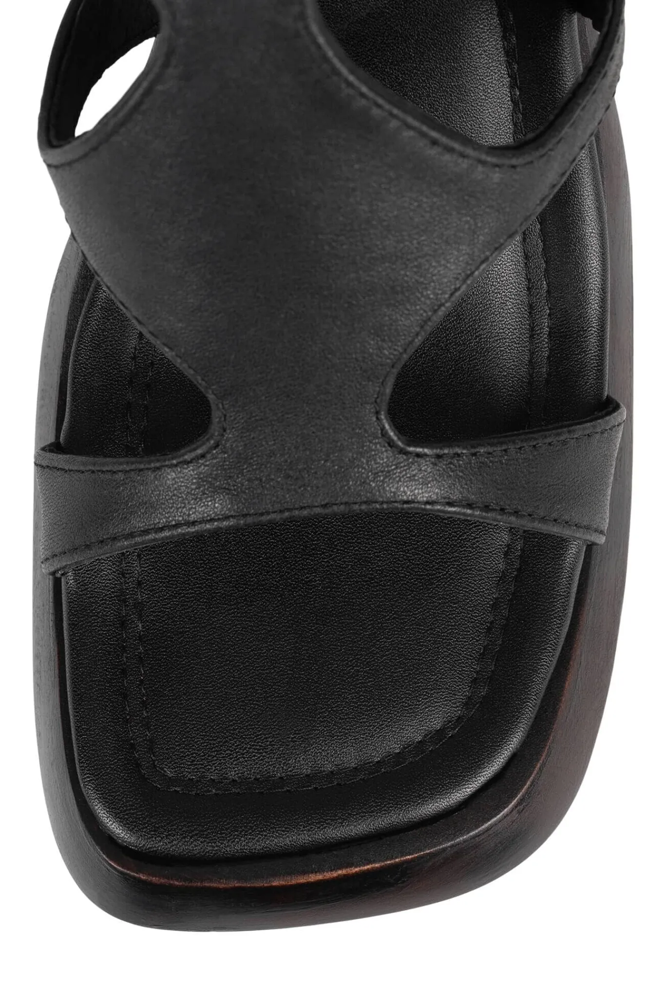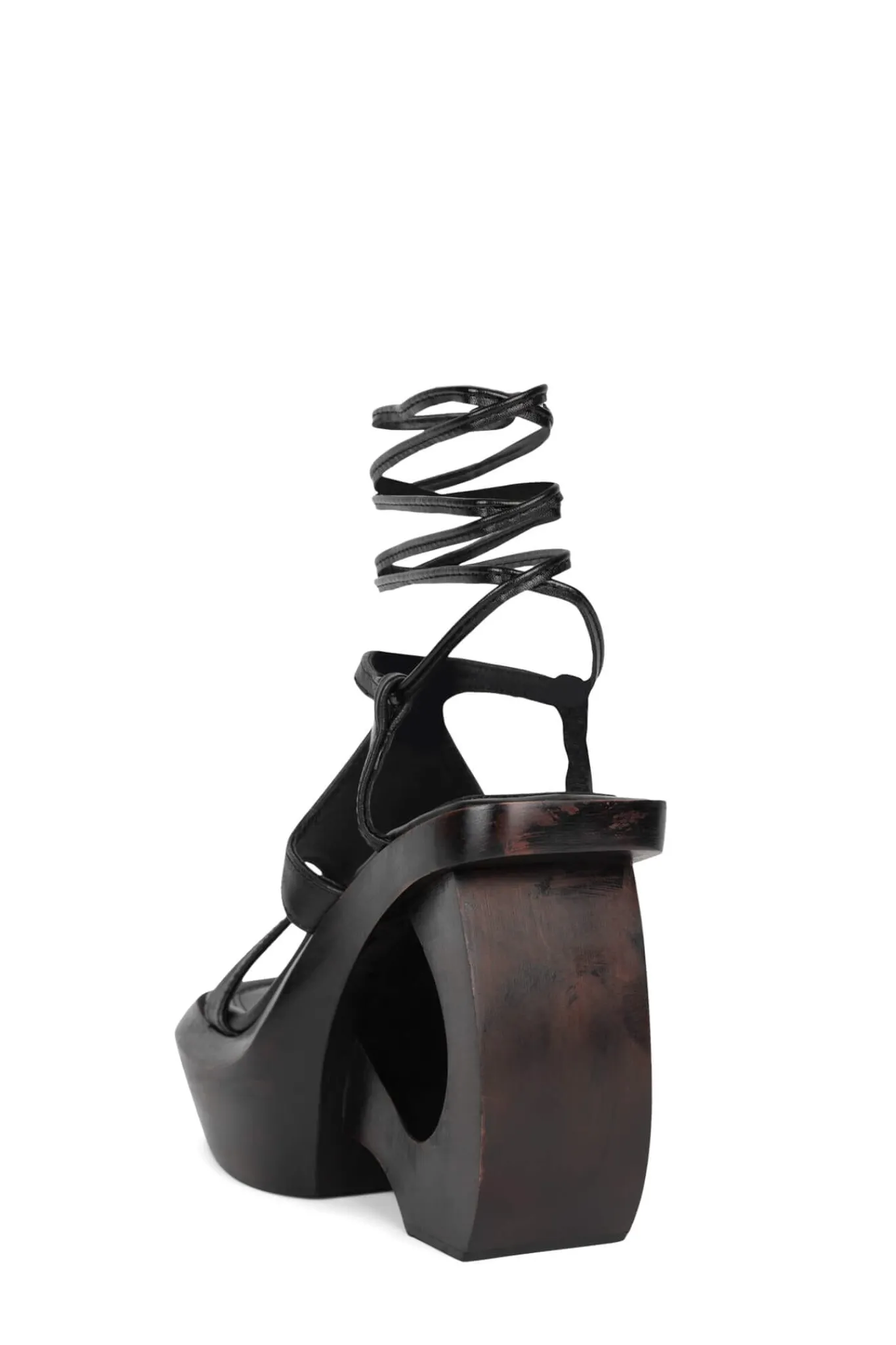 Strappy wrap-around sandal with sculpted wooden platform Fits true to sizeMeasurements taken from a size 7 4.75″ Heel,…