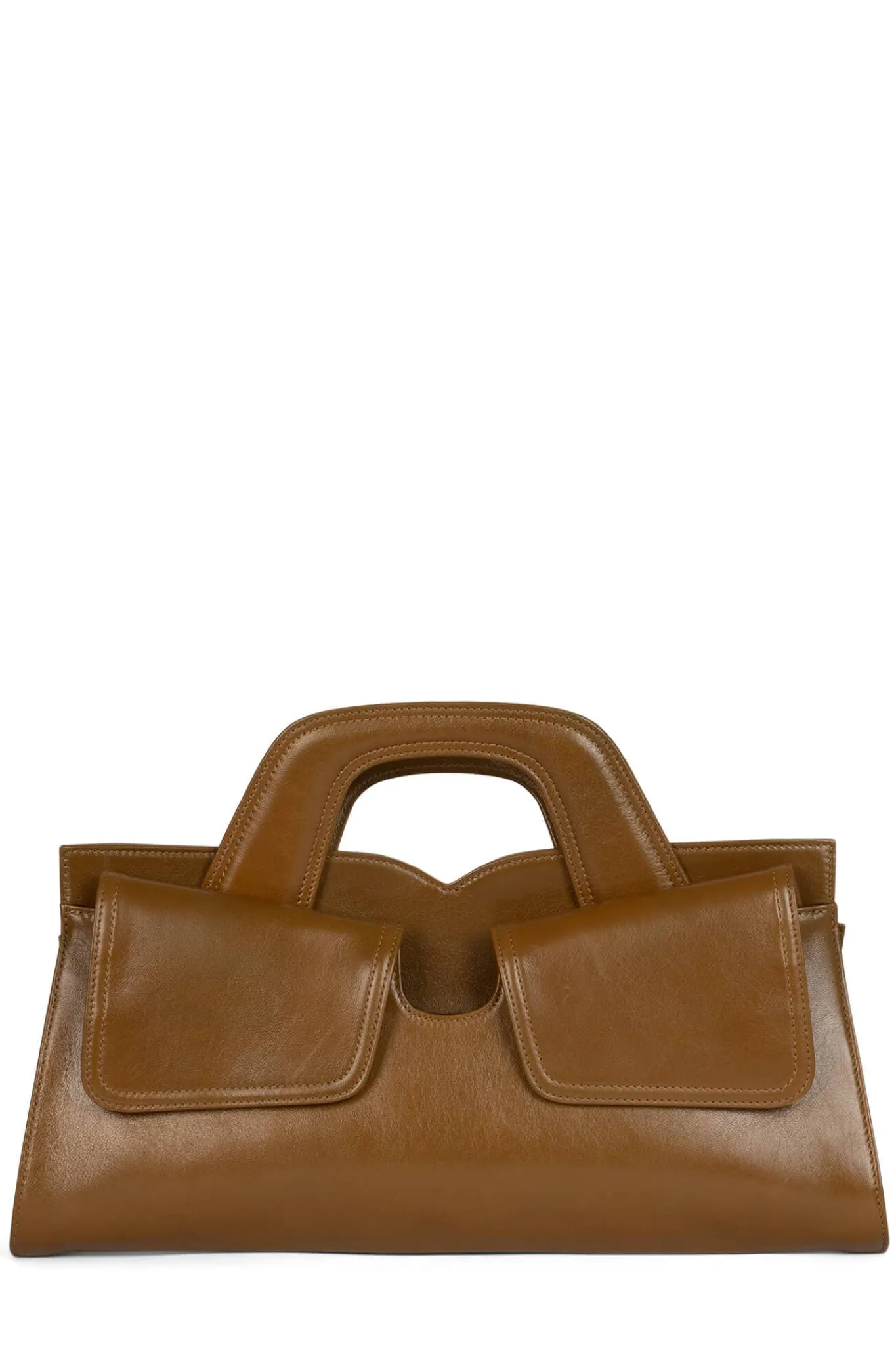 East-west top-handle clutch handbag with removable shoulder strap and front pocket