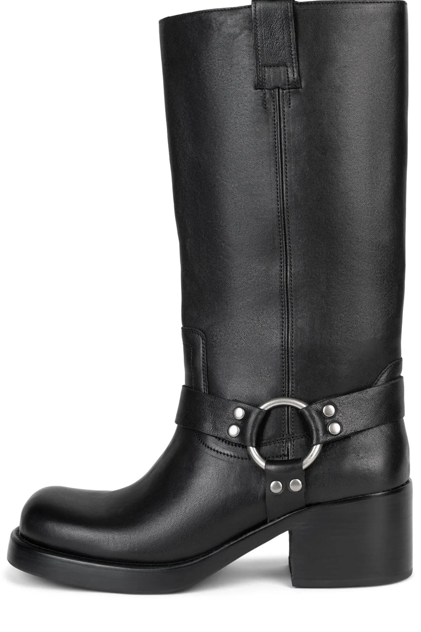 Knee-high heeled moto-bootFits true to sizeMeasurements taken from a size 7 2.5″ Heel, 0.75″ Platform13″ Shaft, 15″ Leg…
