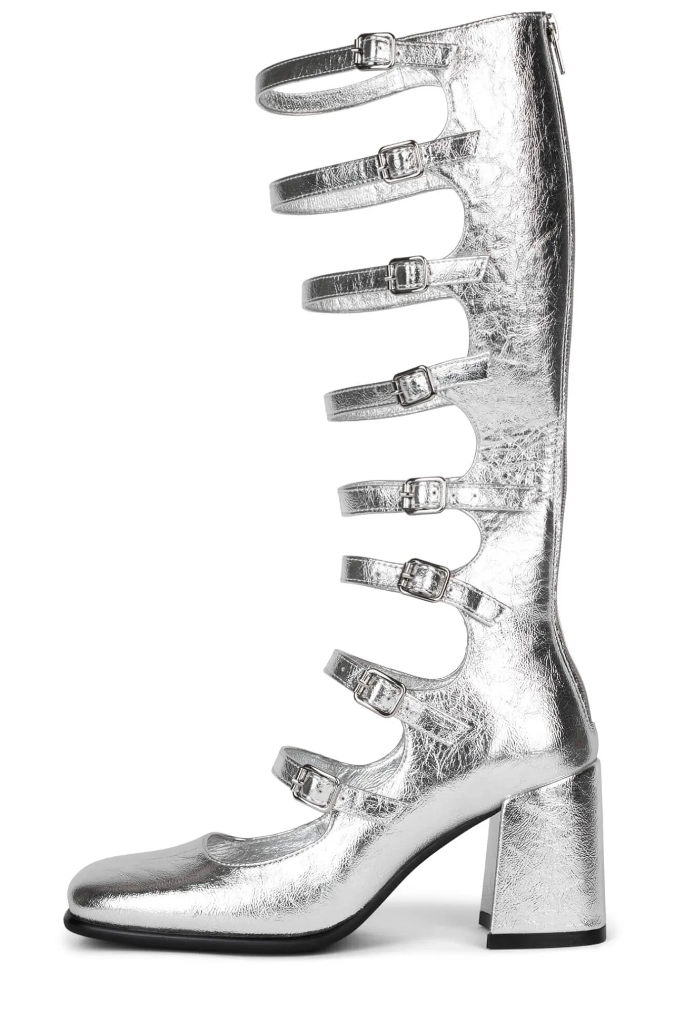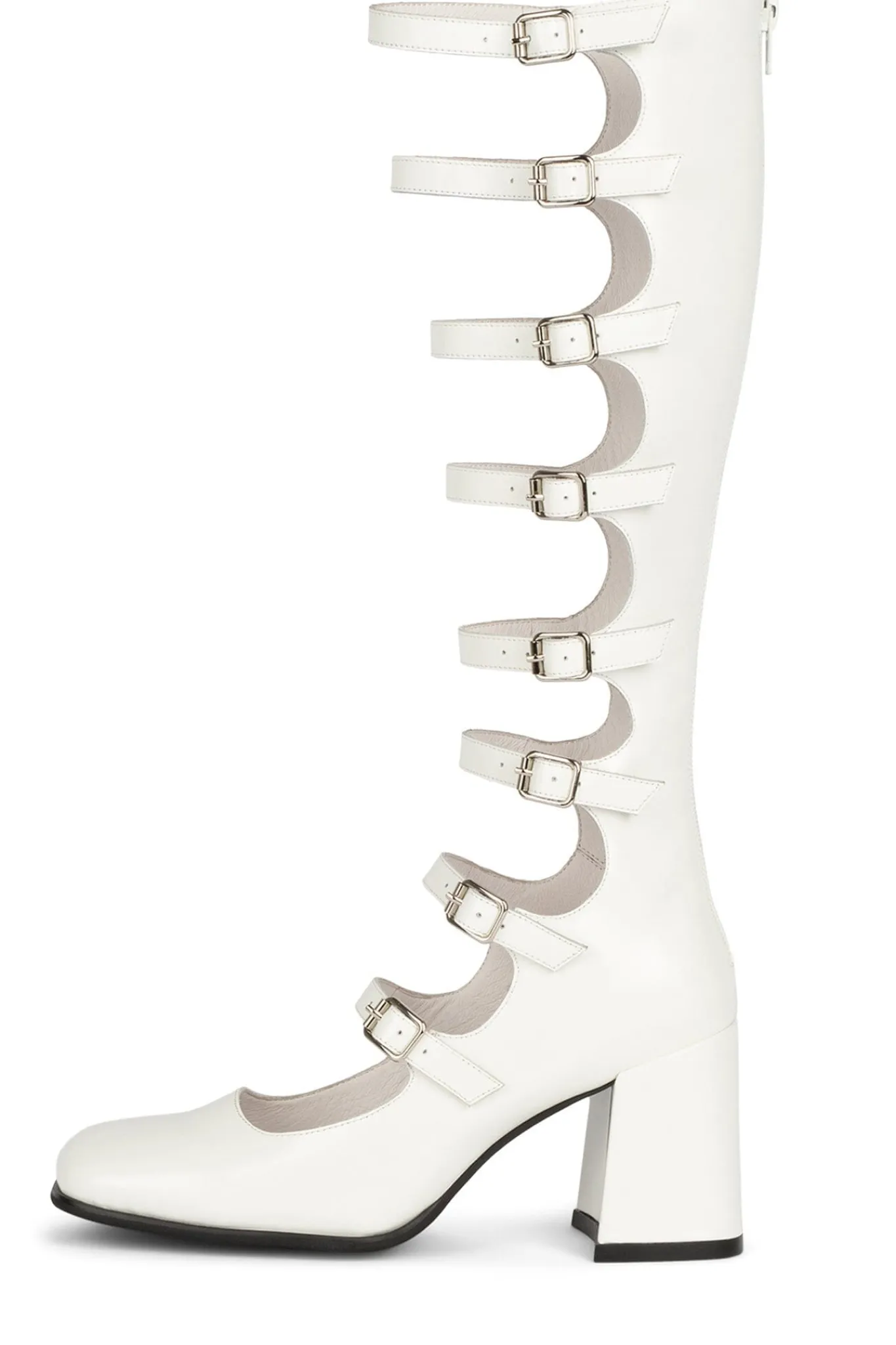 Cut-out knee-high pump with buckle detail