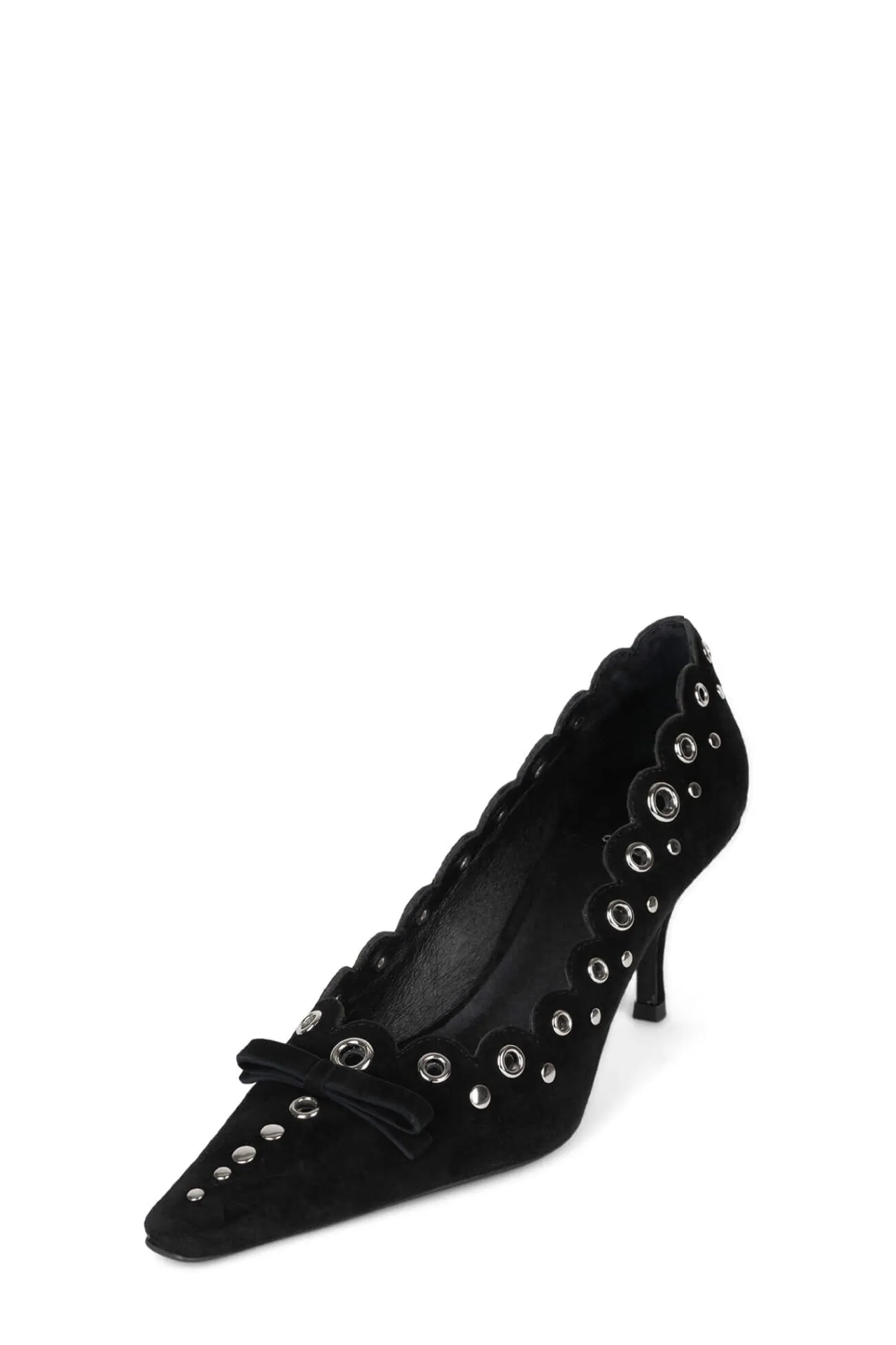 Pointed-toe pump with eyelet and bow-detail