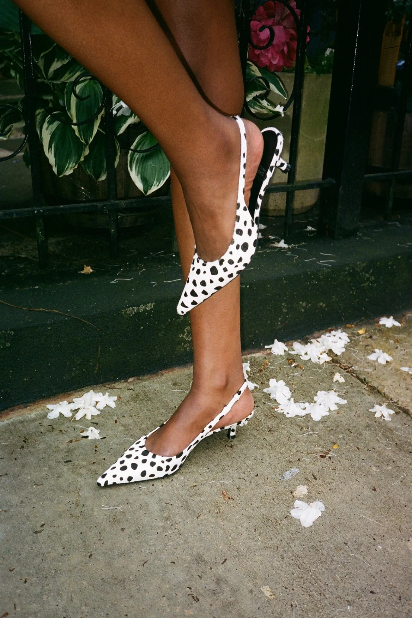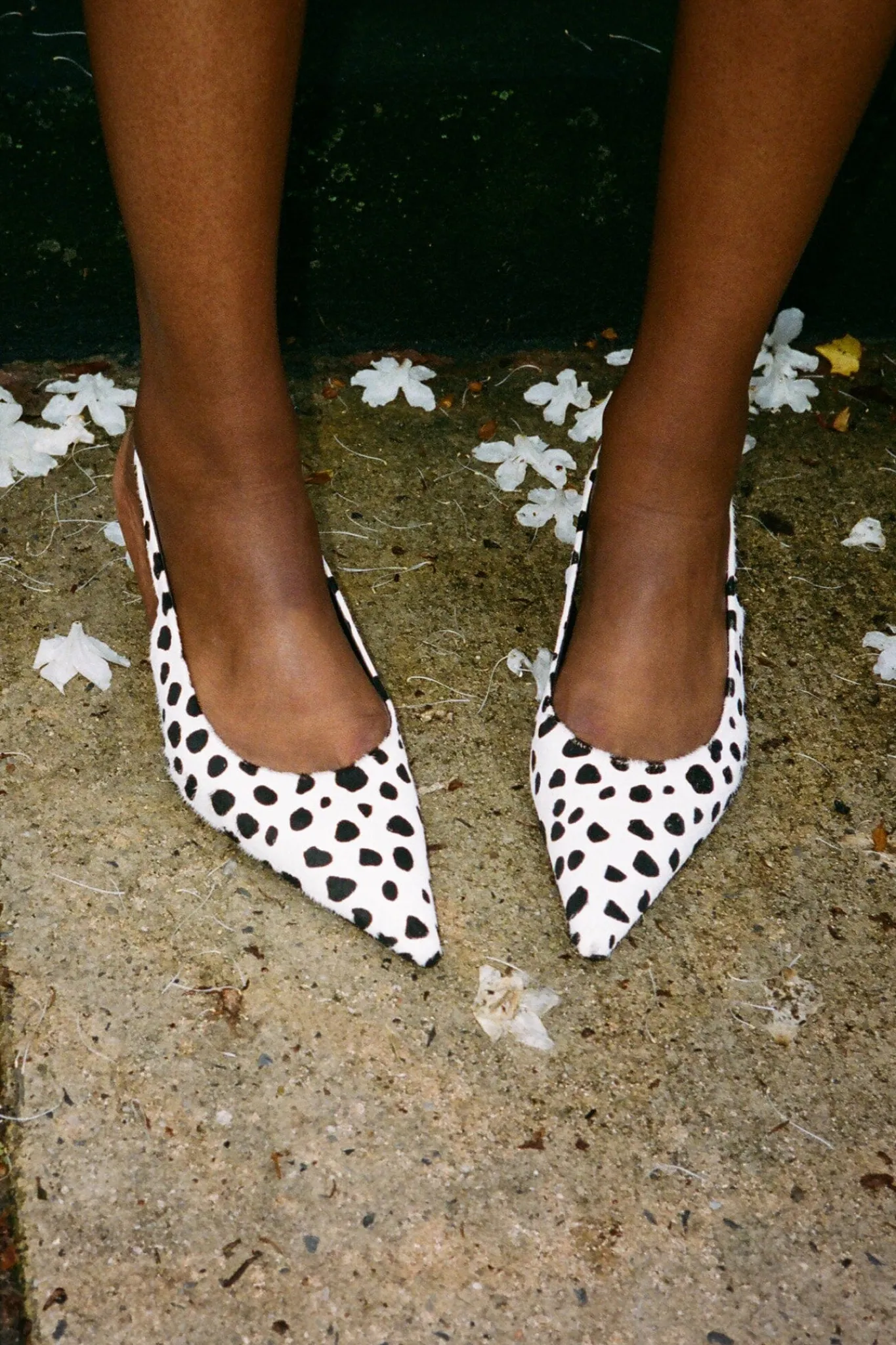 Calf-hair slingback pointed toe kitten heel.Fits true to sizeMeasurements taken from a size 7 1.75″ Heel, 0.25″ Platfor…
