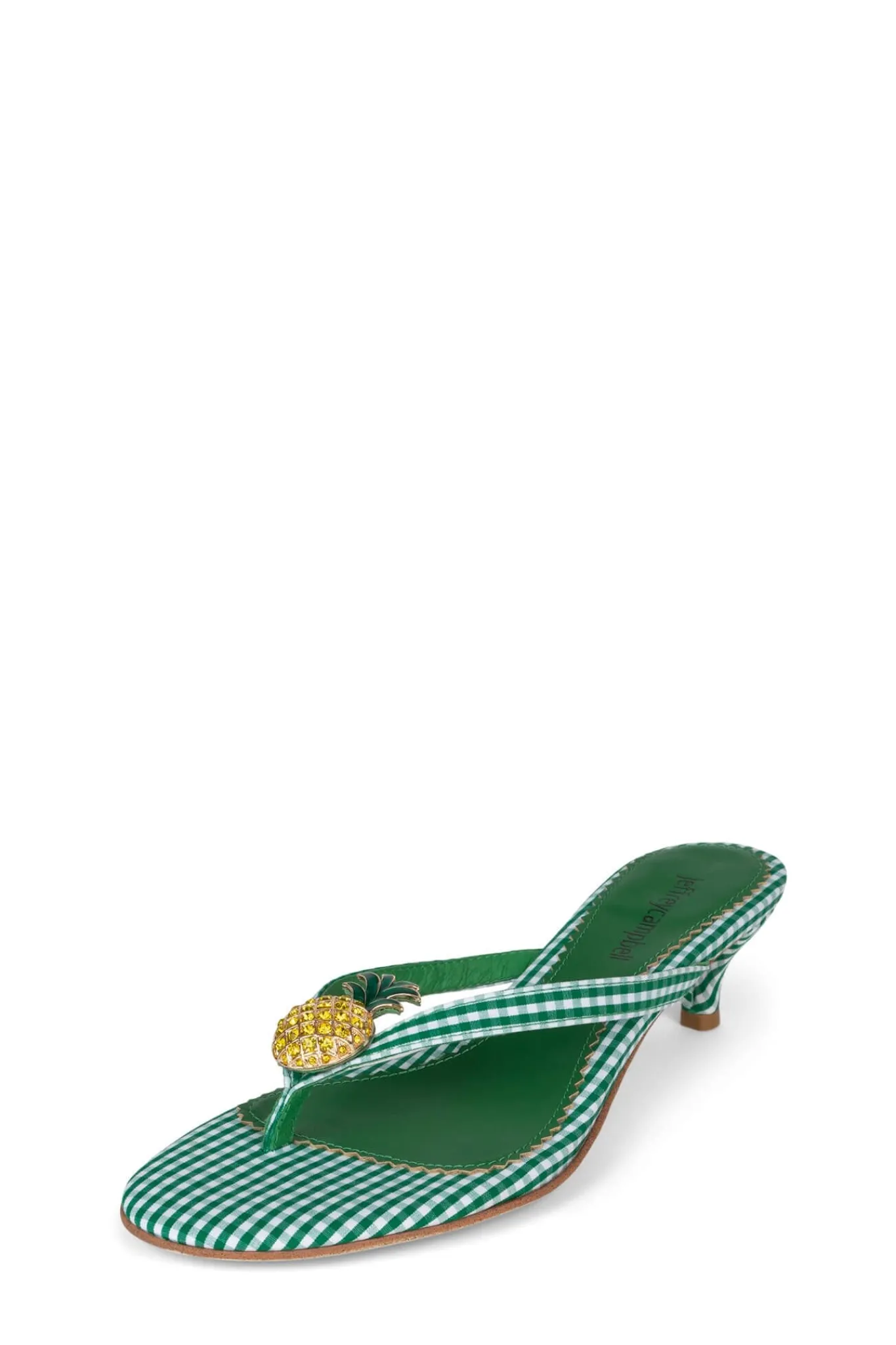 Kitten-heeled thong sandal with a pineapple embellishmentFits true to sizeMeasurements taken from a size 7 2″ Heel, 0.2…