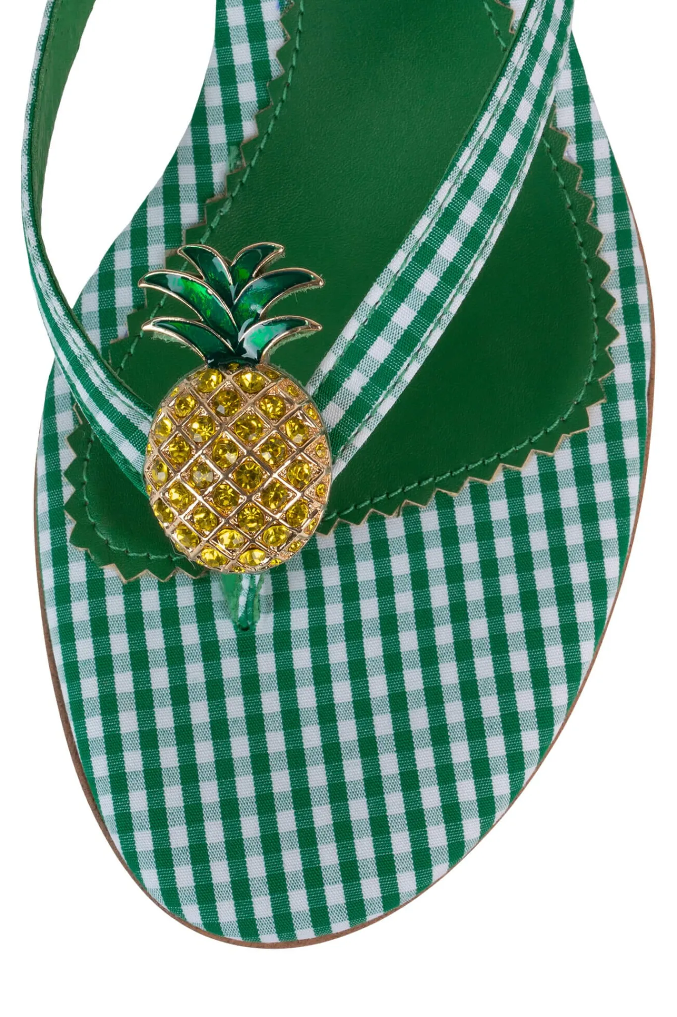 Kitten-heeled thong sandal with a pineapple embellishment