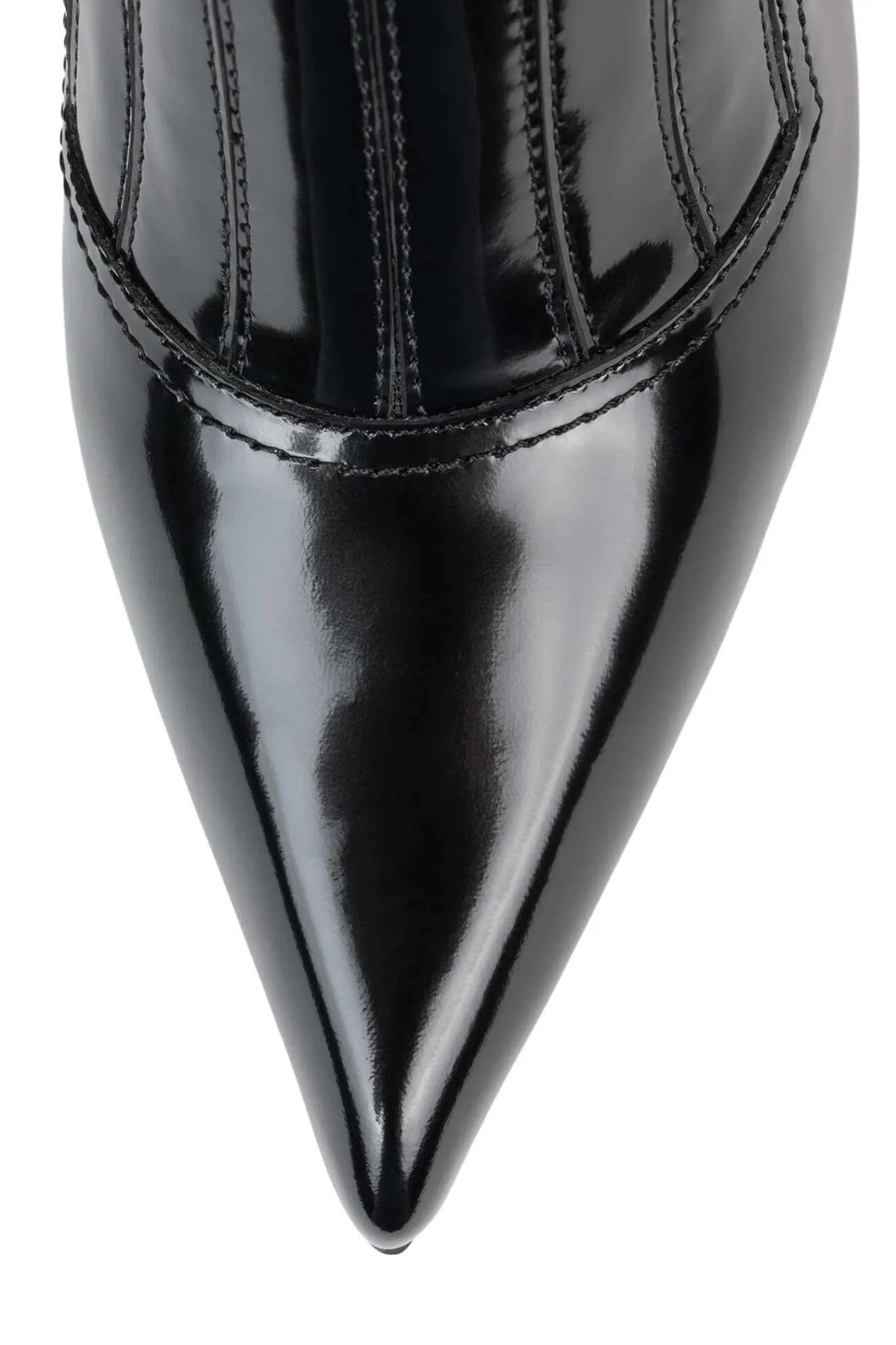Pointed-toe stiletto boot Fits true to sizeMeasurements taken from a size 7 3.75″ Heel, 0.25″ PlatformLeather Upper, L…