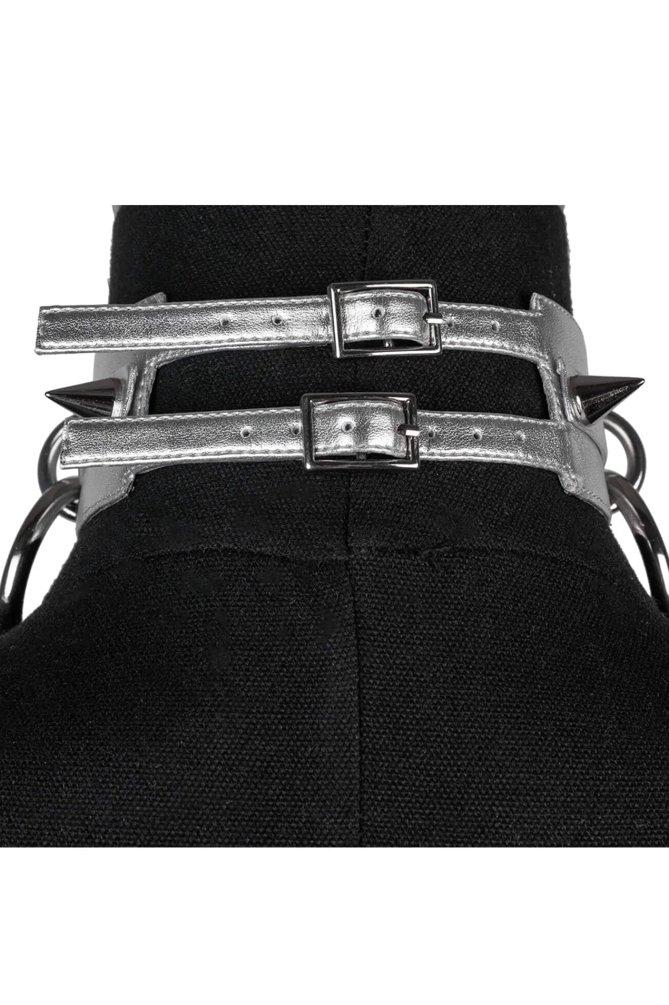 Choker with chain, o-ring and spike detail Pairs perfectly with our MOBILIZE stiletto heels, & SUBVERT arm cuff. M…