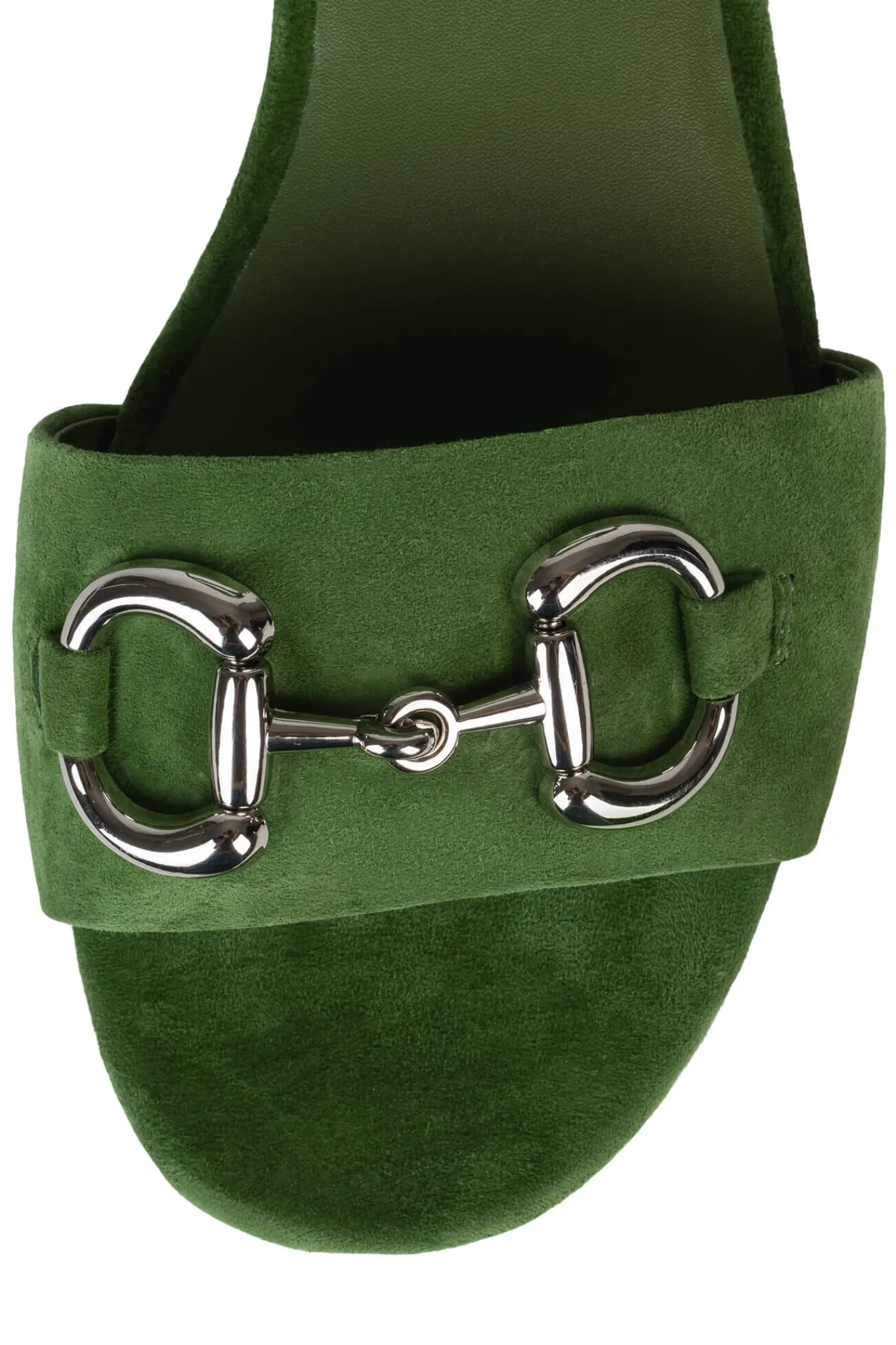 Platform sandal with metal bit and ankle strapFits true to sizeMeasurements taken from a size 7 2.5″ Heel, 1.5″ Platfor…