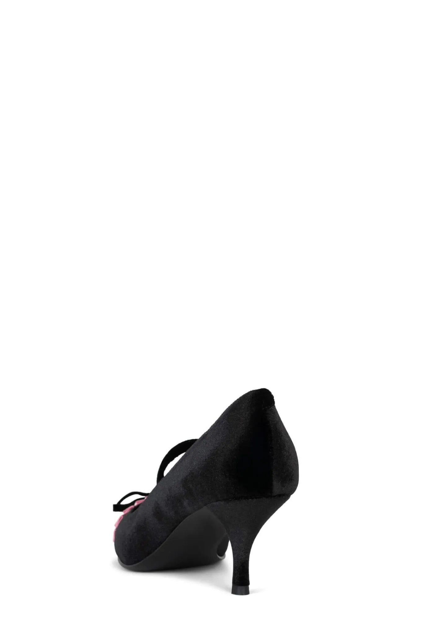 Mary-Jane pump with ruffle and bow detail Fits true to sizeMeasurements taken from a size 72″ Heel, 0.25″ PlatformFab…