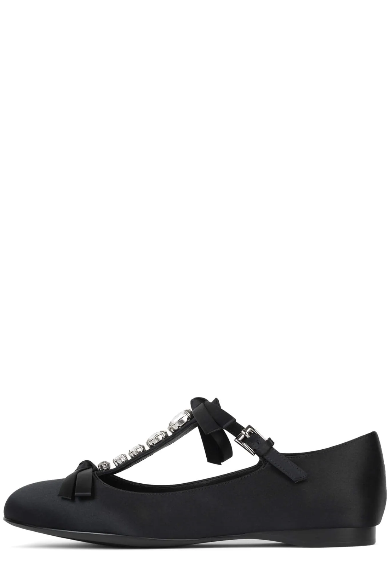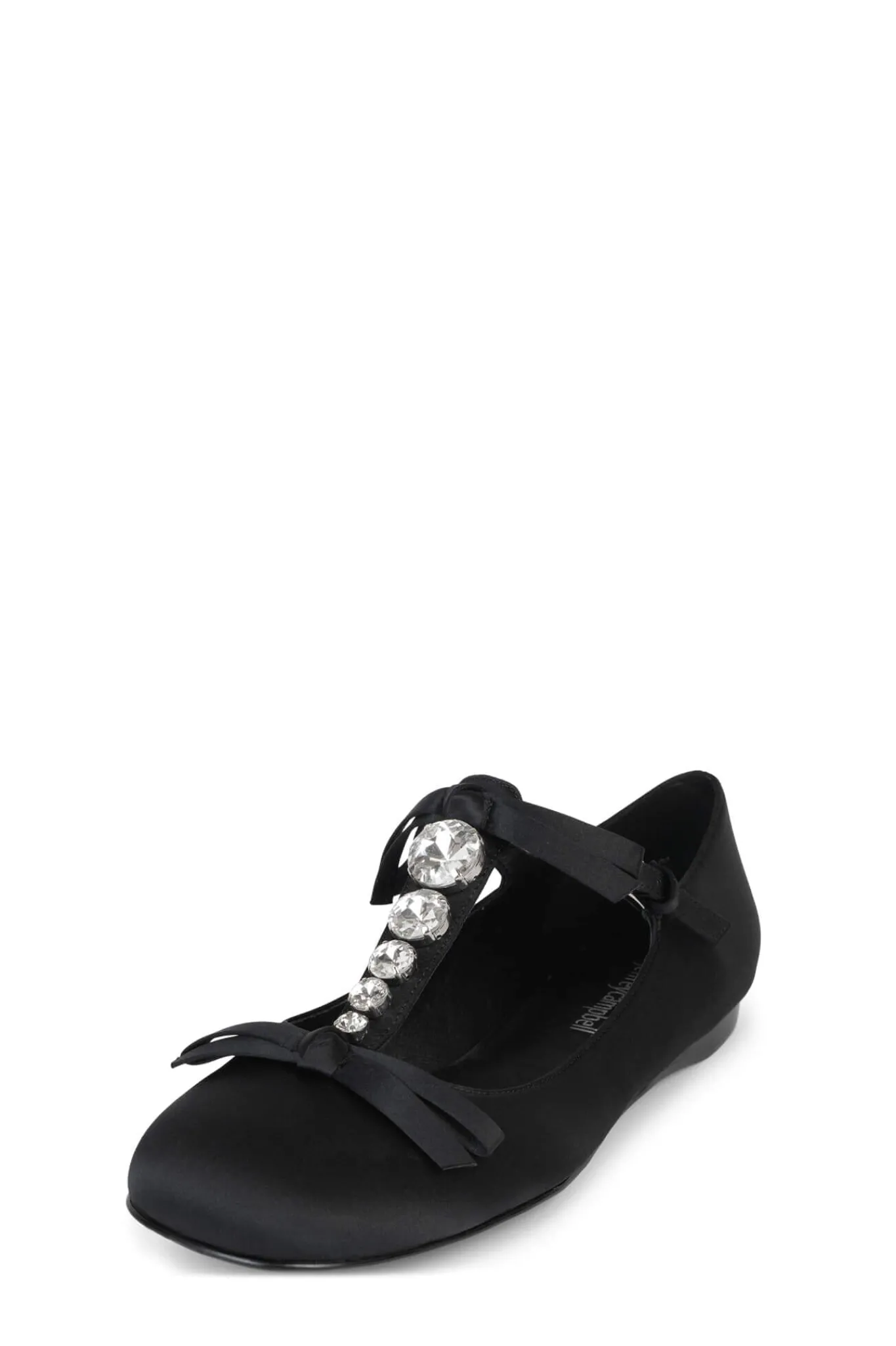 T-strap ballet flat with pearl and bow detail Fits true to sizeMeasurements taken from size 7 0.5″ Heel, 0.25″ Platfor…