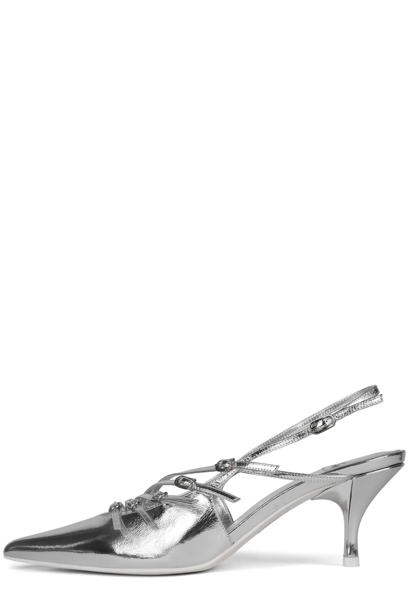 Pointed-toe strappy slingback pump