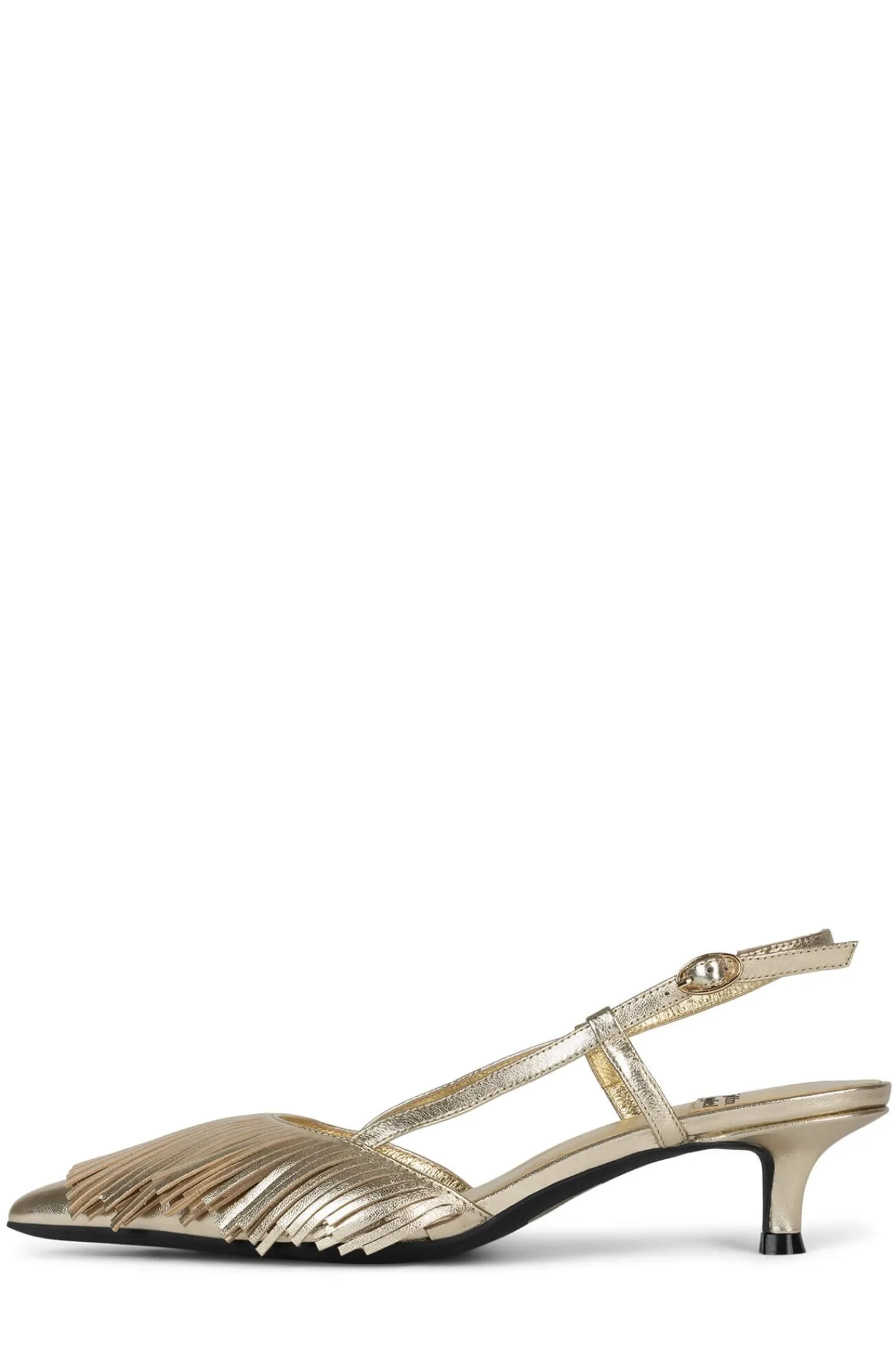 Slingback kitten heel pump with fringe detail Fits true to sizeMeasurements taken from size 7 1.75″ Heel, 0.25″ Platfo…