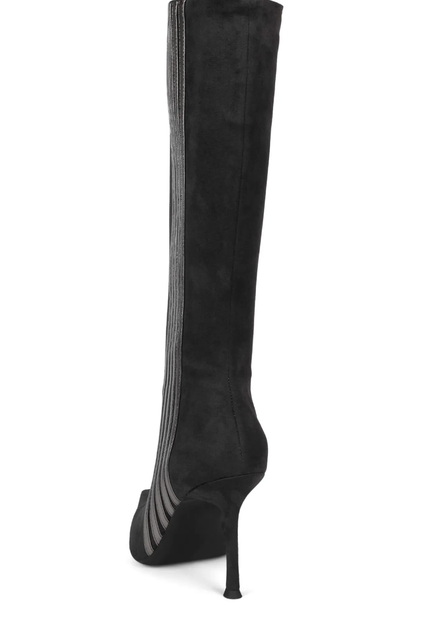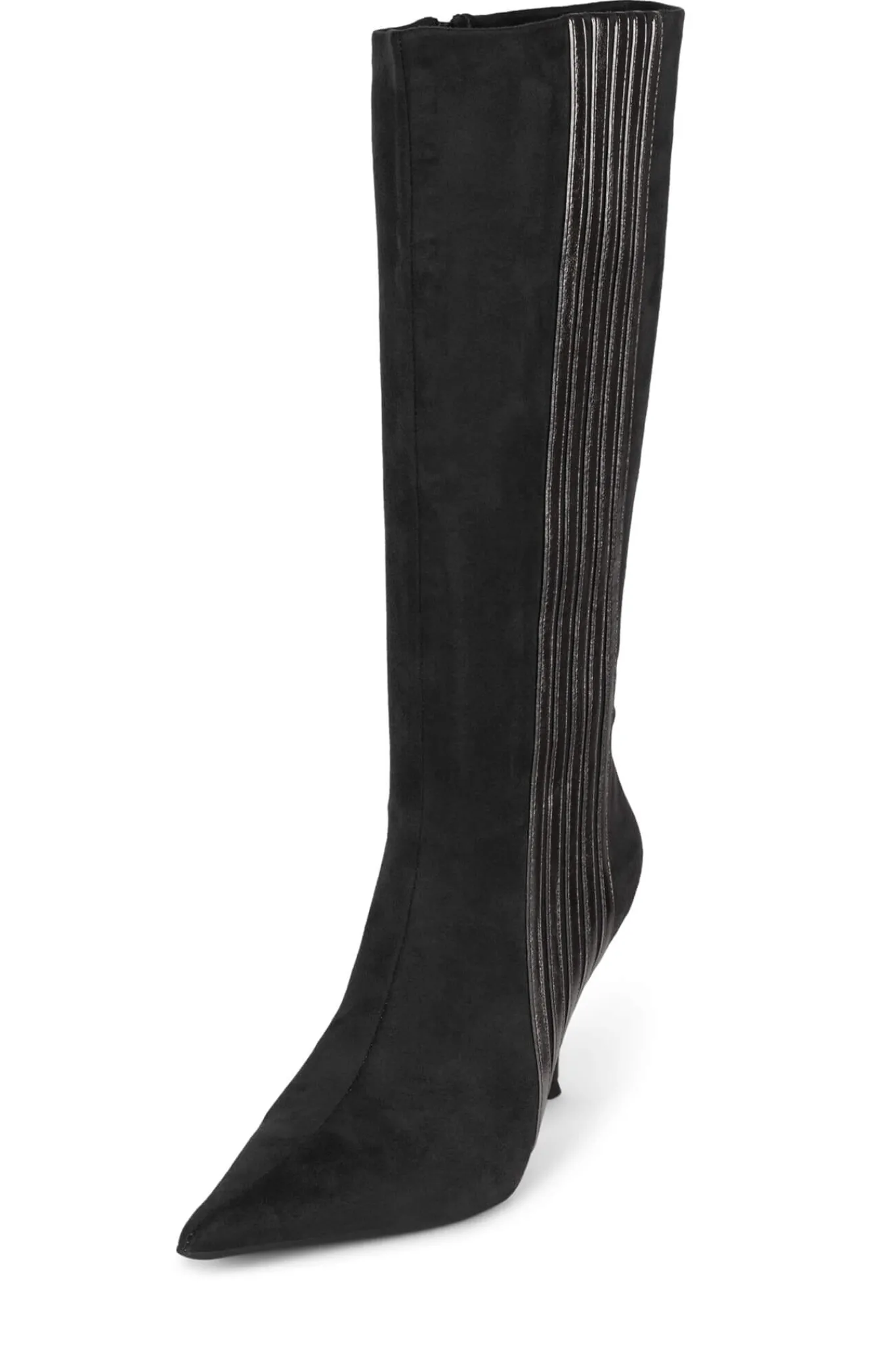 Pointed-toe knee-high stiletto boot with contrasting stripe detailFits true to sizeMeasurements taken from size 7 3.75″…
