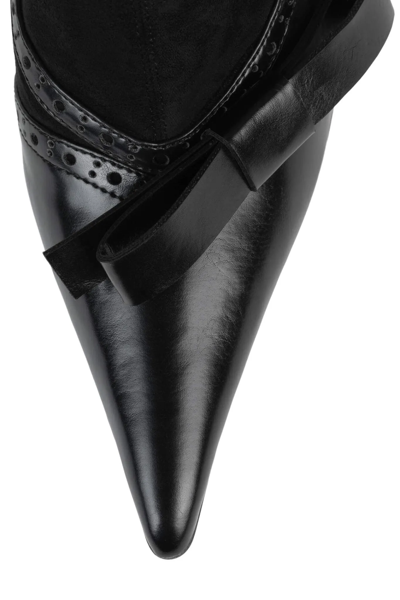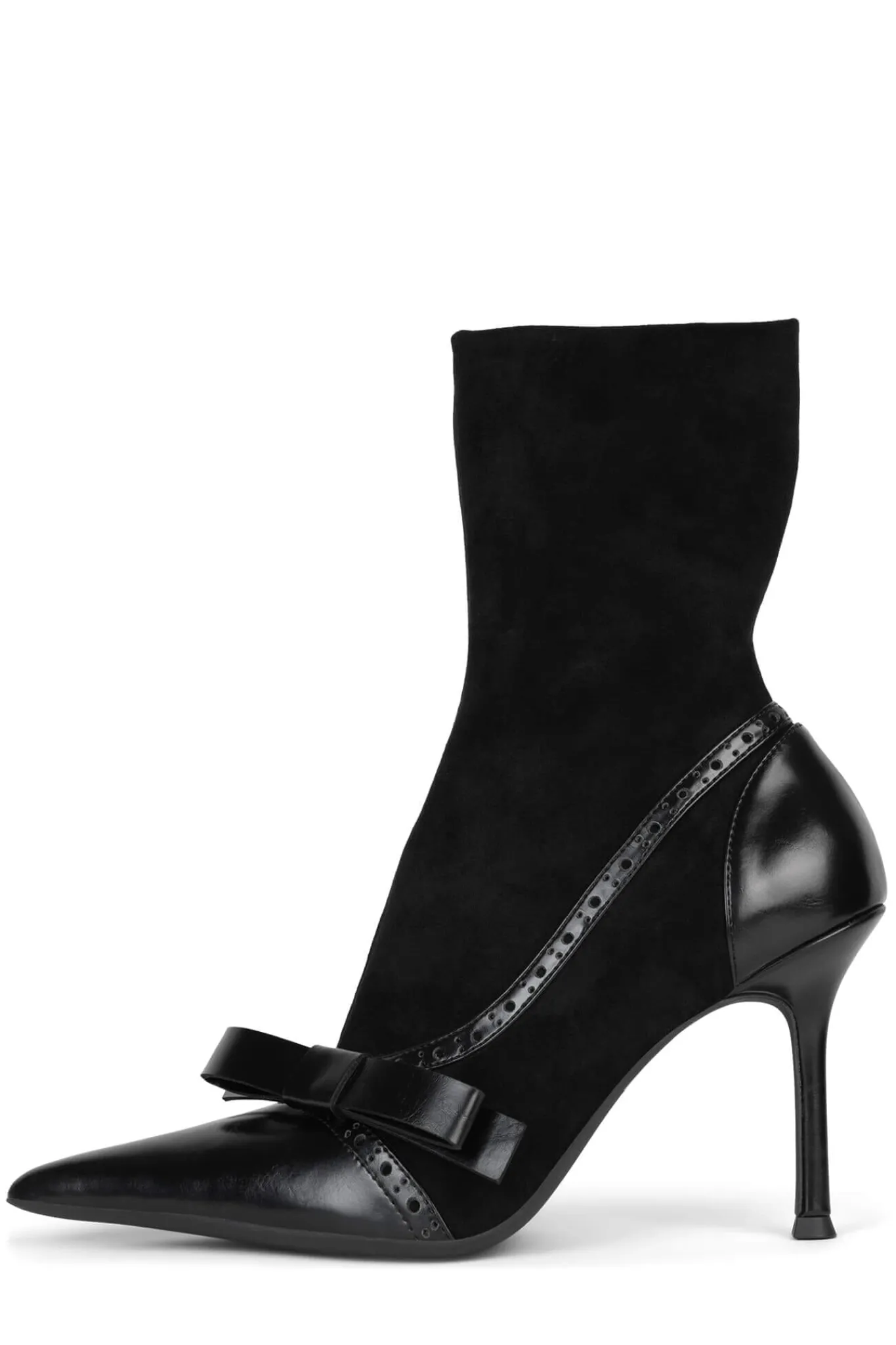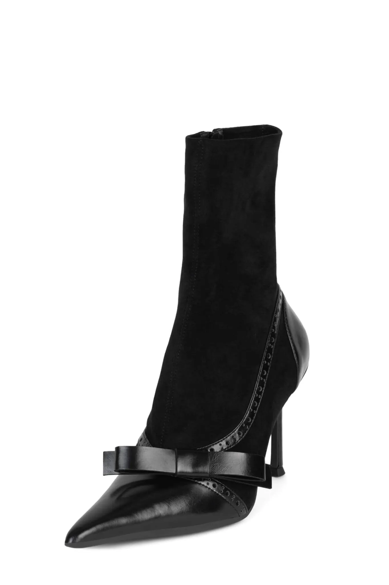 Color-blocked pointed-toe stiletto boot with bow detailFits true to sizeMeasurements taken from a size 7 3.5″ Heel, 0.2…