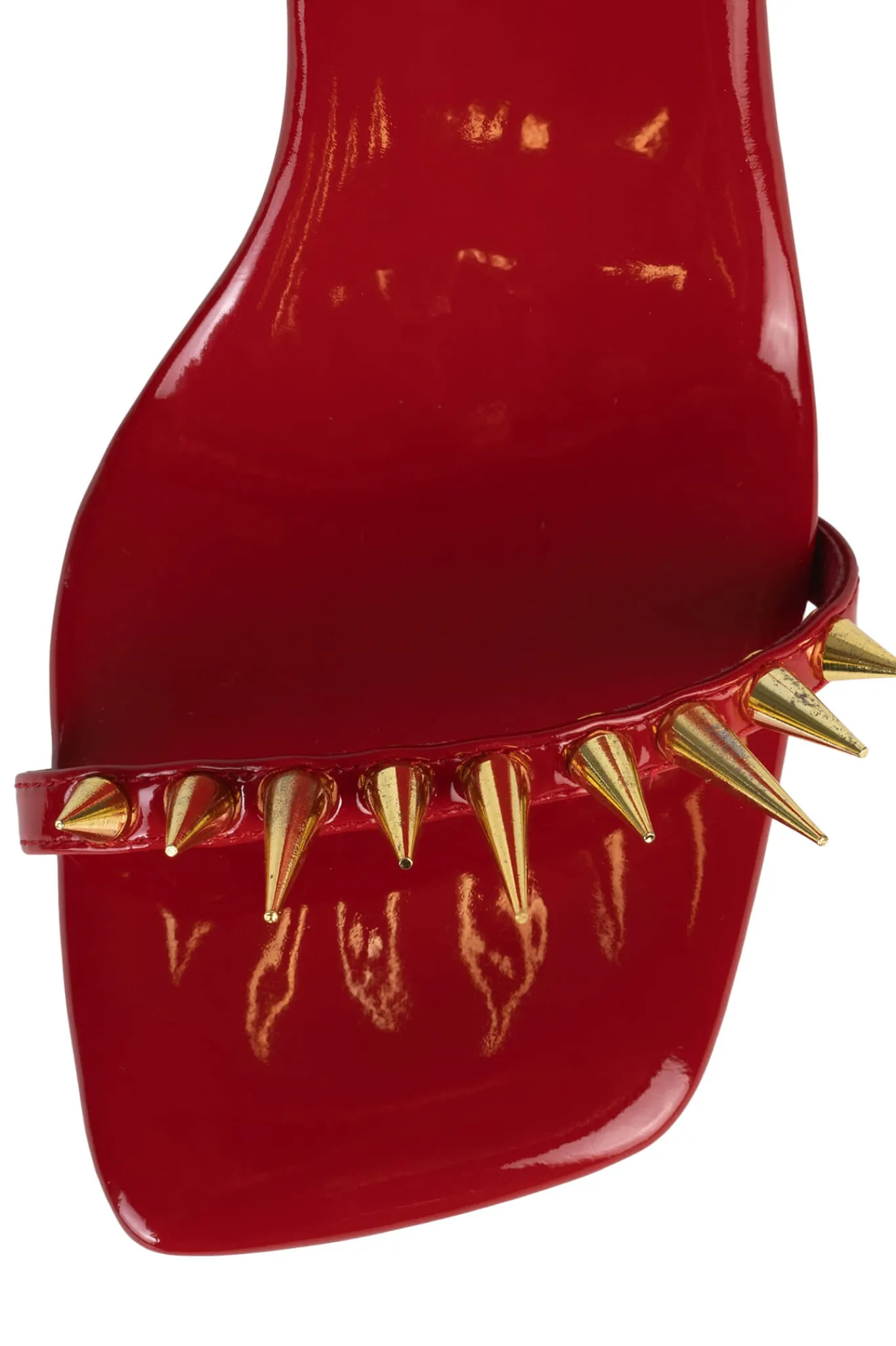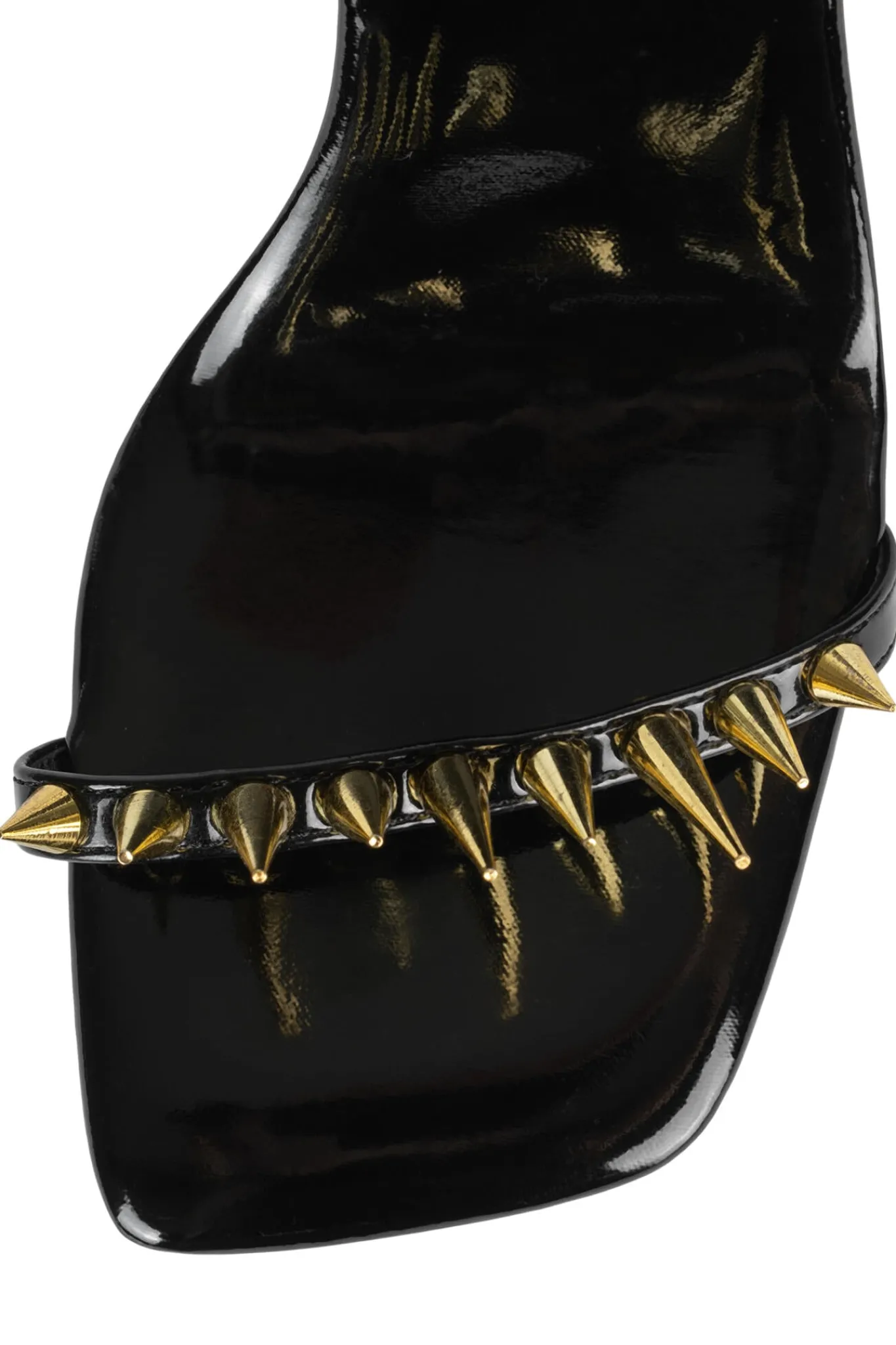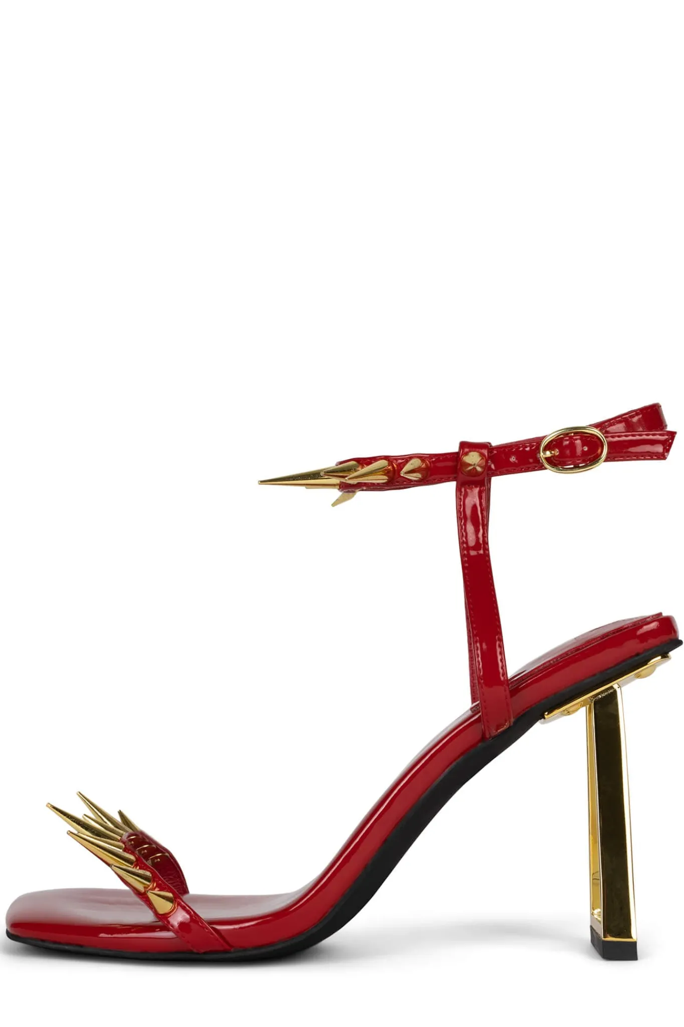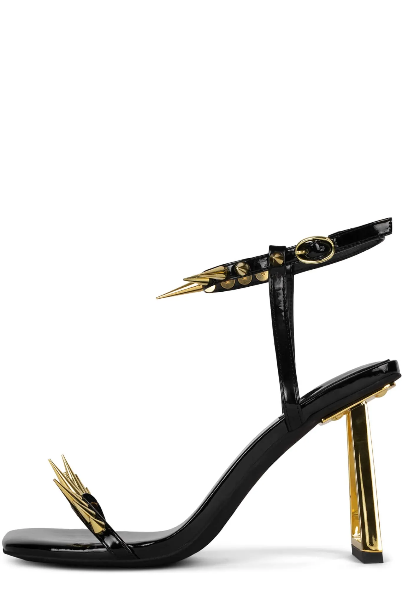 Minimal sandal with sculpted heel and spikesFits true to sizeMeasurements taken from a size 7 4″ heel, 0.25″ PlatformSy…