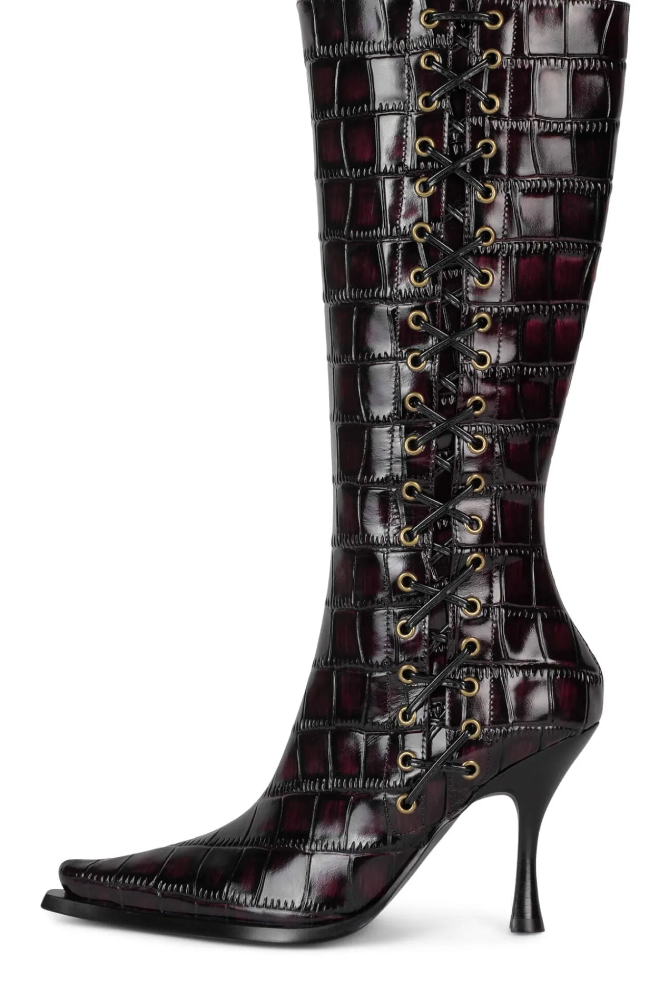 Knee-high heeled boot with lace-up detail Fits true to sizeMeasurements taken from a size 7 3.5″ Heel, 0.25″ Platform1…