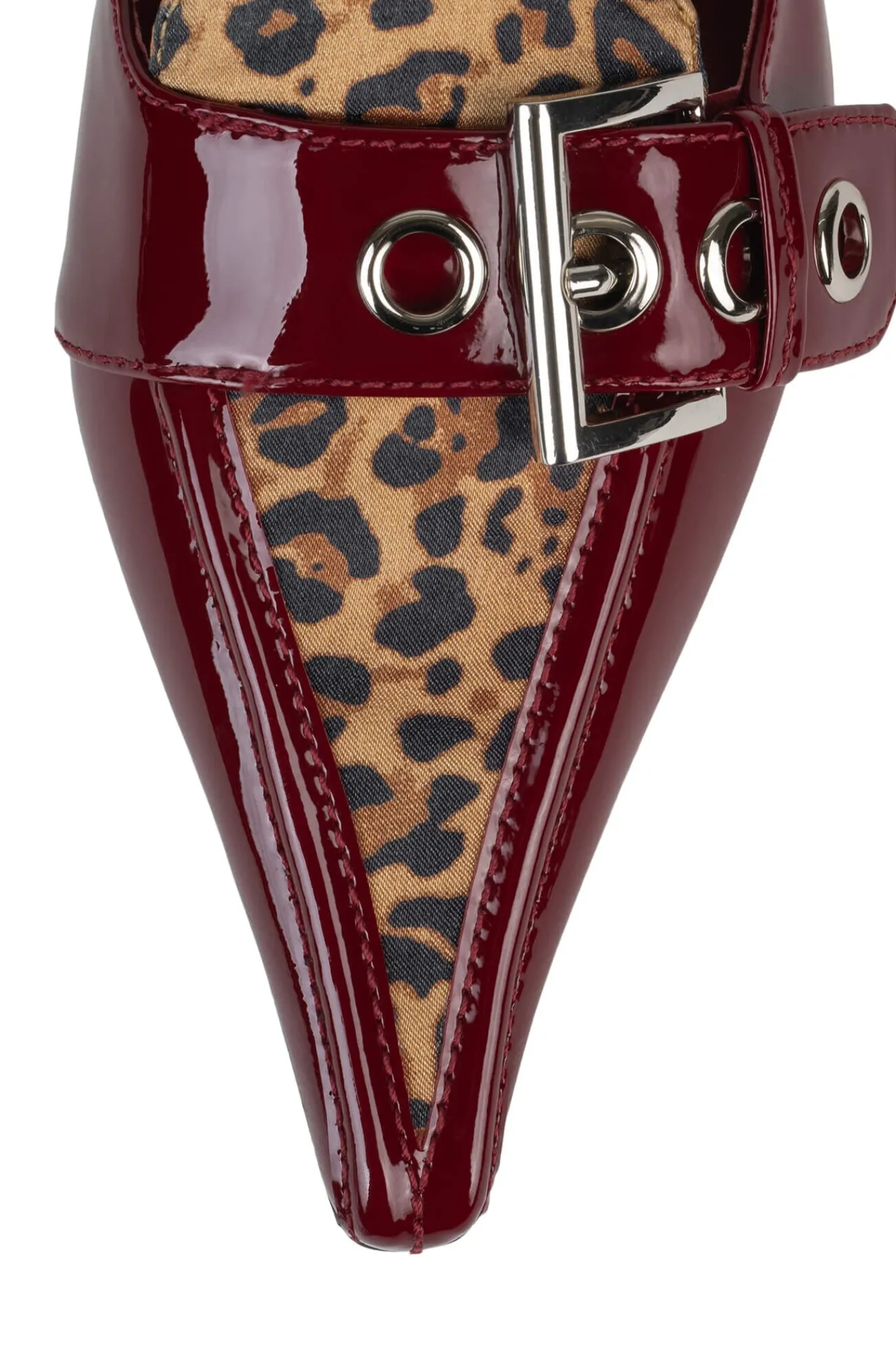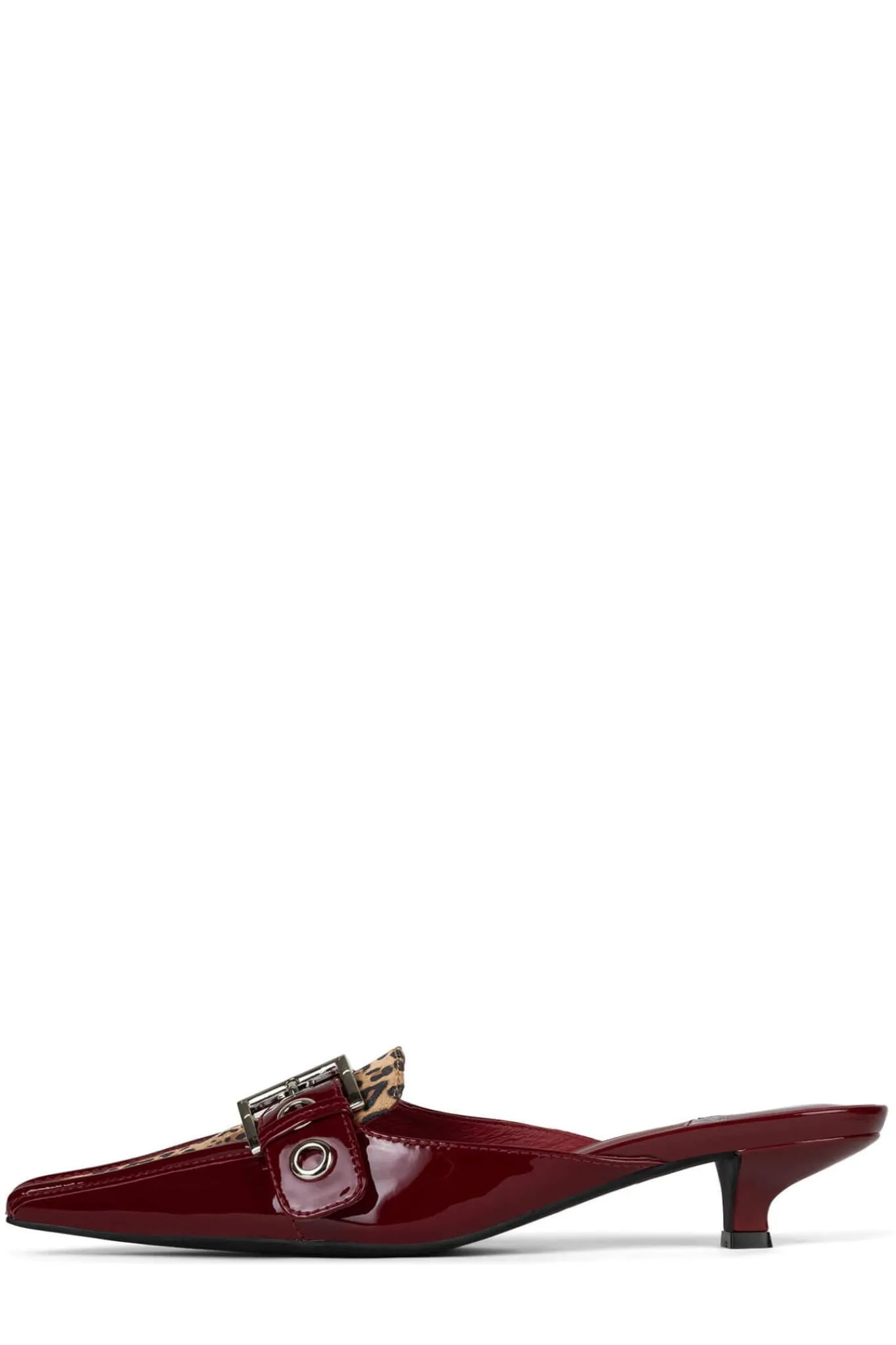 Pointed-toe kitten heel loafer mule with buckle detail