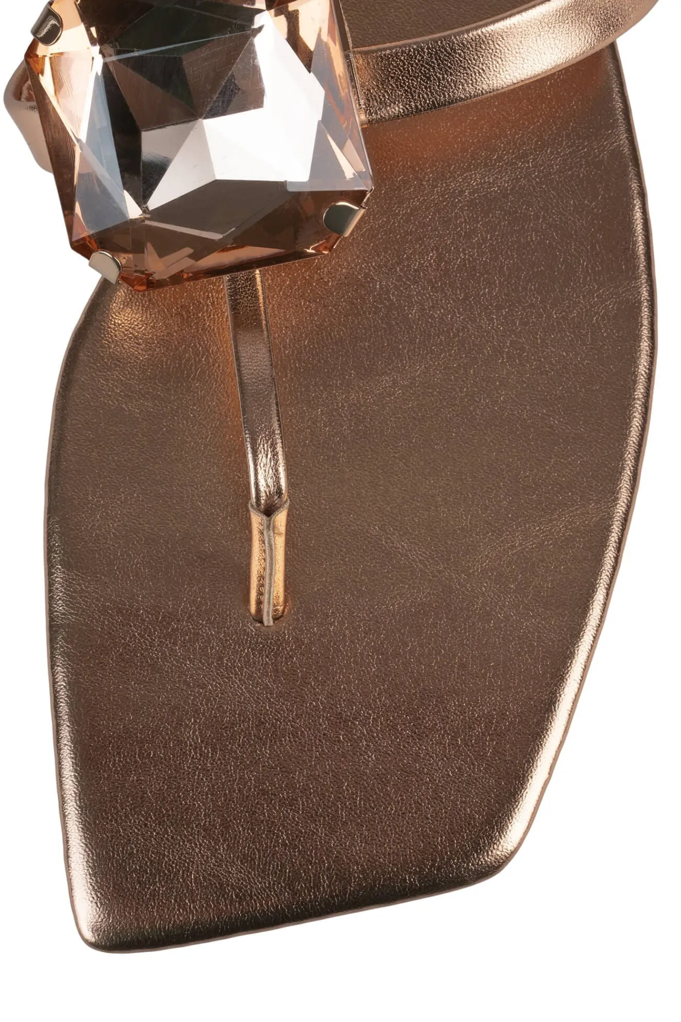 Flat thong sandal with chain ankle strap and jewel ornamentFits true to sizeMeasurements taken from a size 7 0.75″ Heel…