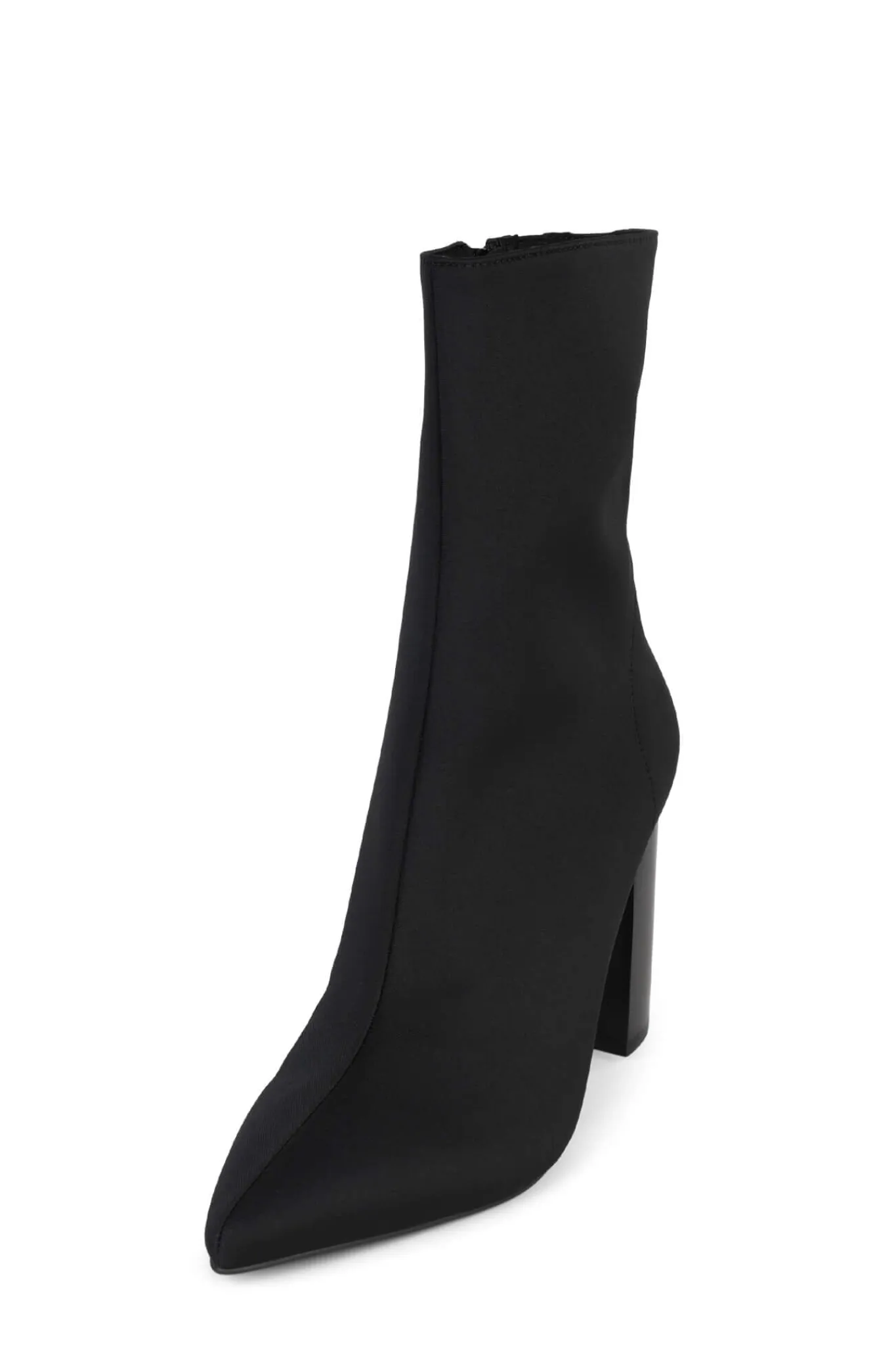 Pointy toe chunky heeled boot.Fits true to sizeMeasurements taken from size 73.75″ heel6″ shaft, 8.75″ leg openingFabric…
