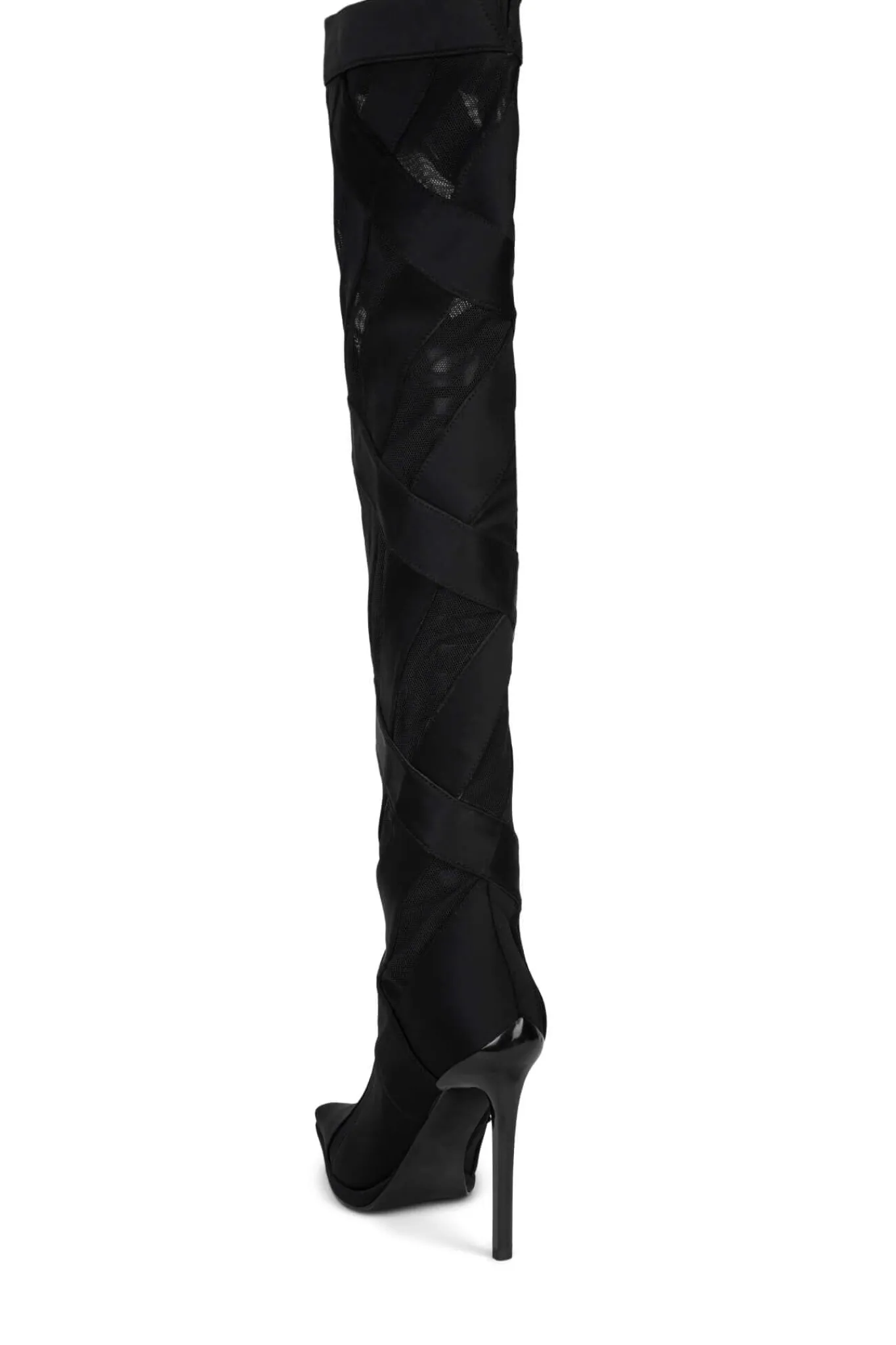Knee-high stiletto boot with mesh inlayFits true to sizeMeasurements taken from a size 75″ Heel, 0.25″ Platform21″ Shaft…