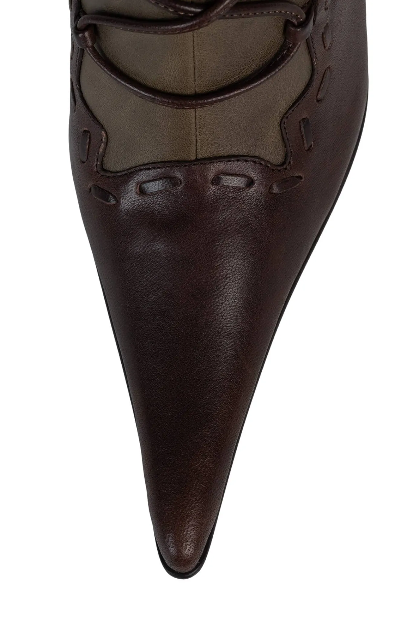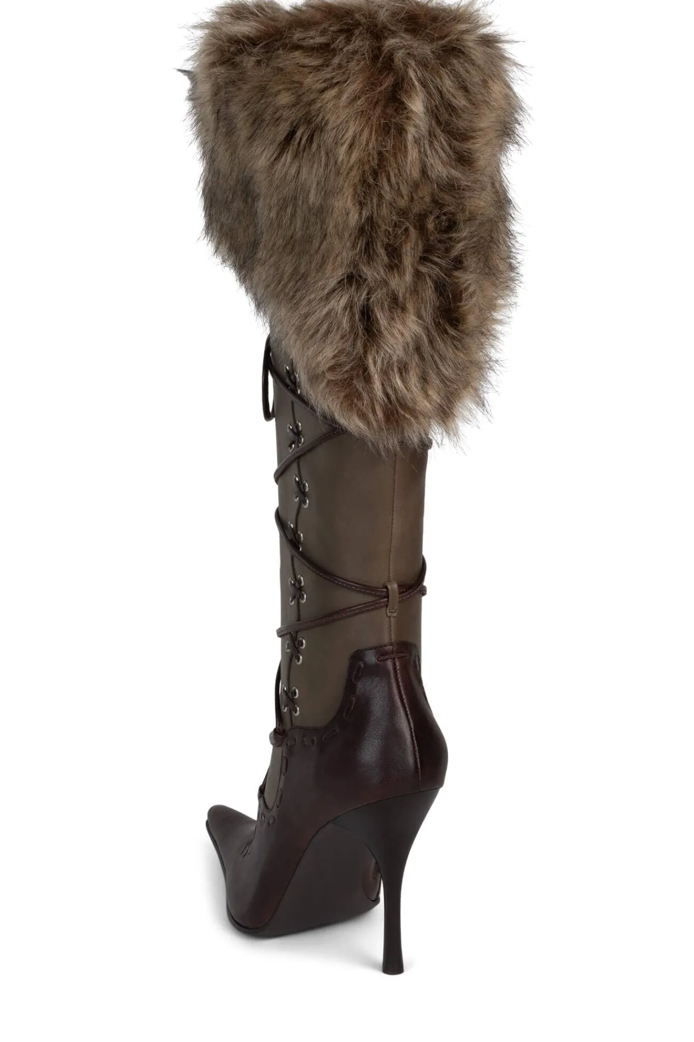 Knee-high faux-fur trimmed stiletto boot with lace-up