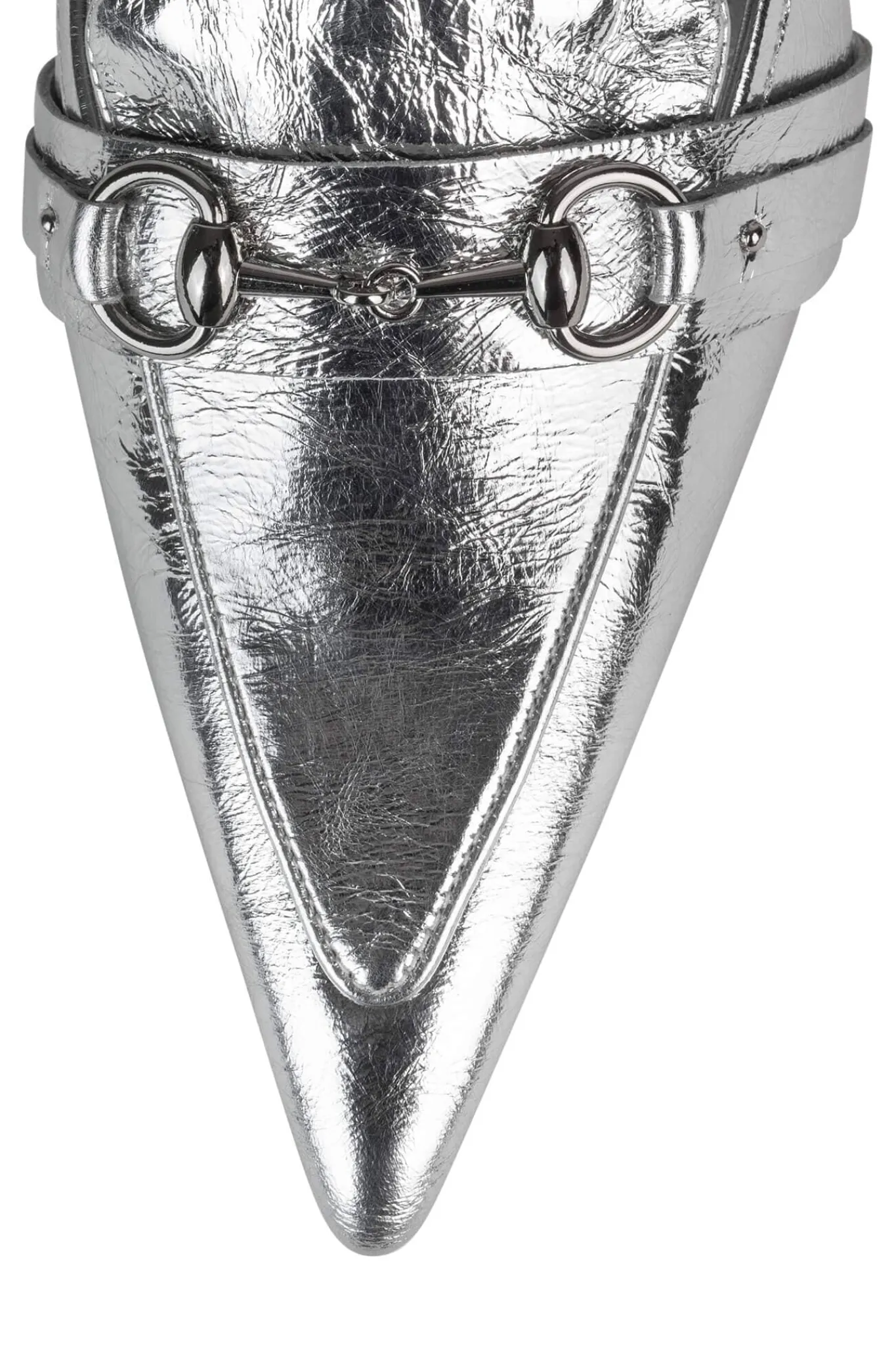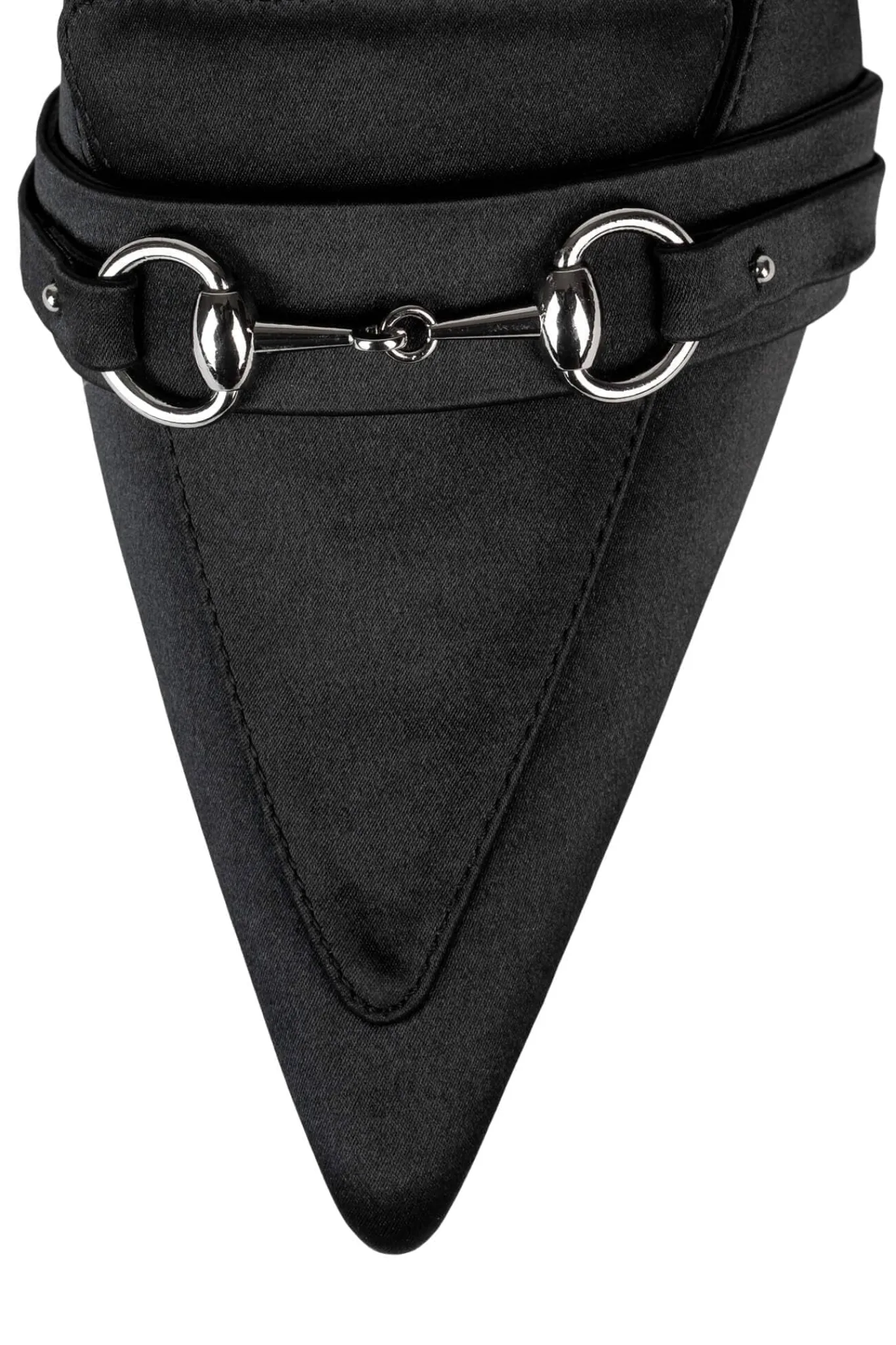 Mid-heel pointed toe tailored mule with bit.