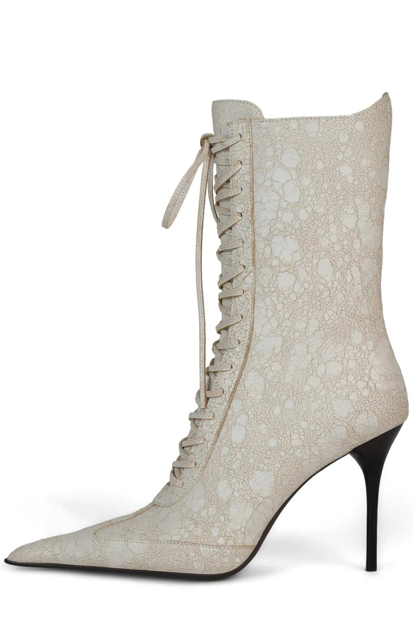 Pointed-toe stiletto lace-up boot Fits true to sizeMeasurements taken from size 7 4″ Heel, 0.25″ Platform8.5″ Shaft, 1…