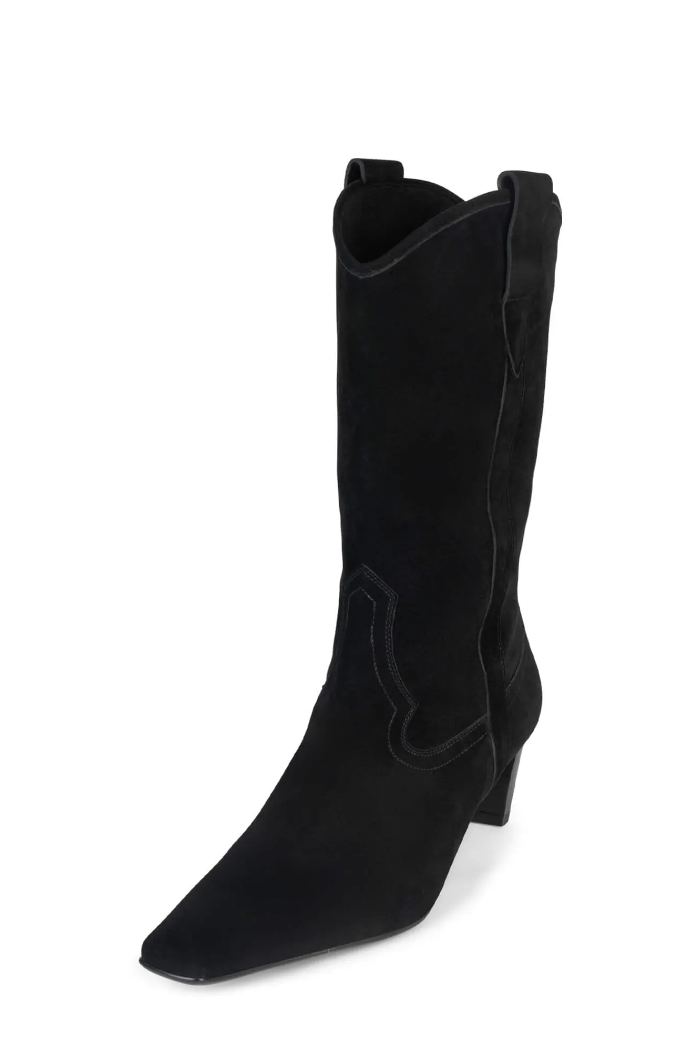 Western-inspired mid-calf heeled boot Fits true to sizeMeasurements taken from size 7 2″ Heel8.5″ Shaft, 12″ Leg Openi…