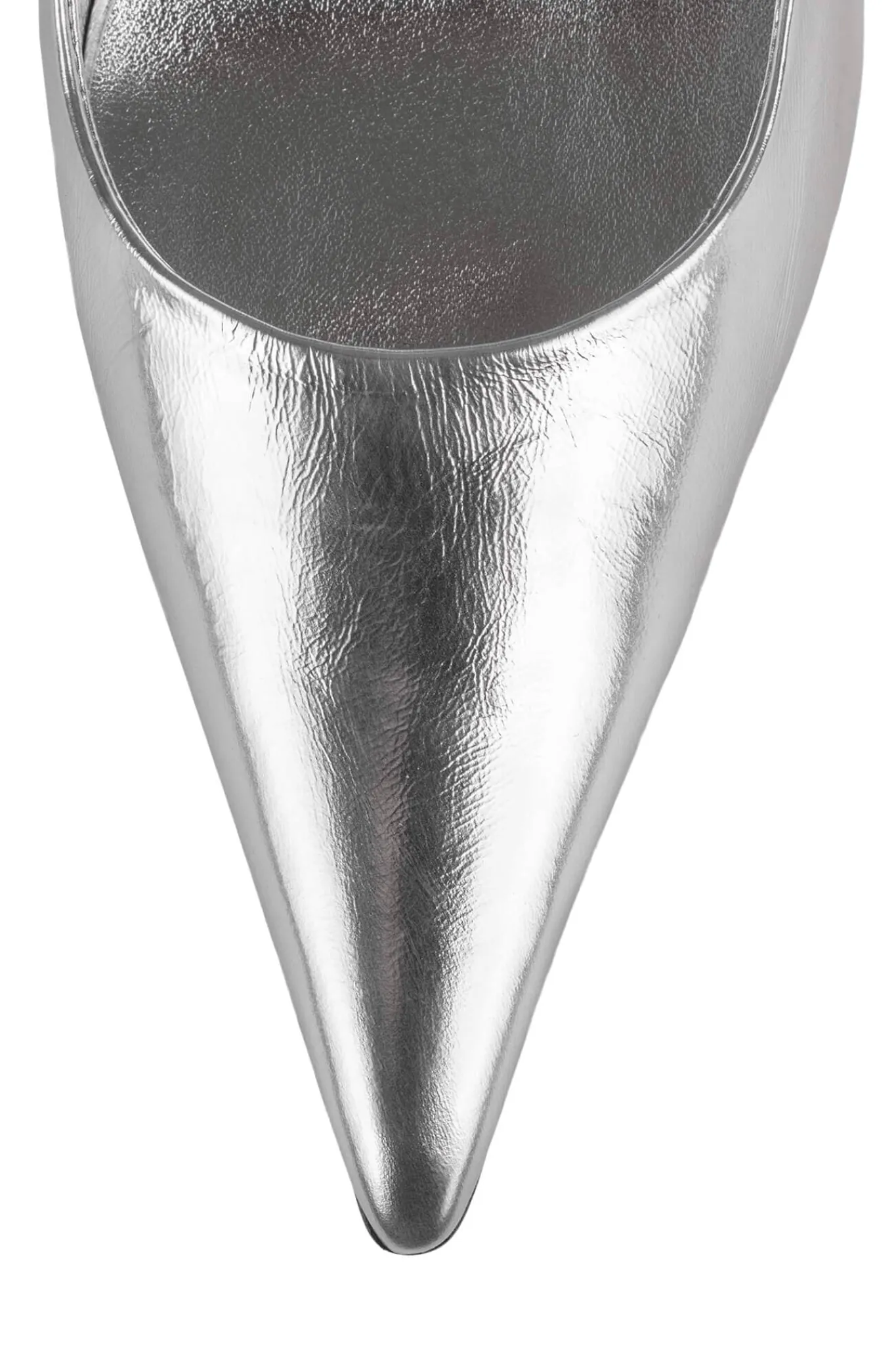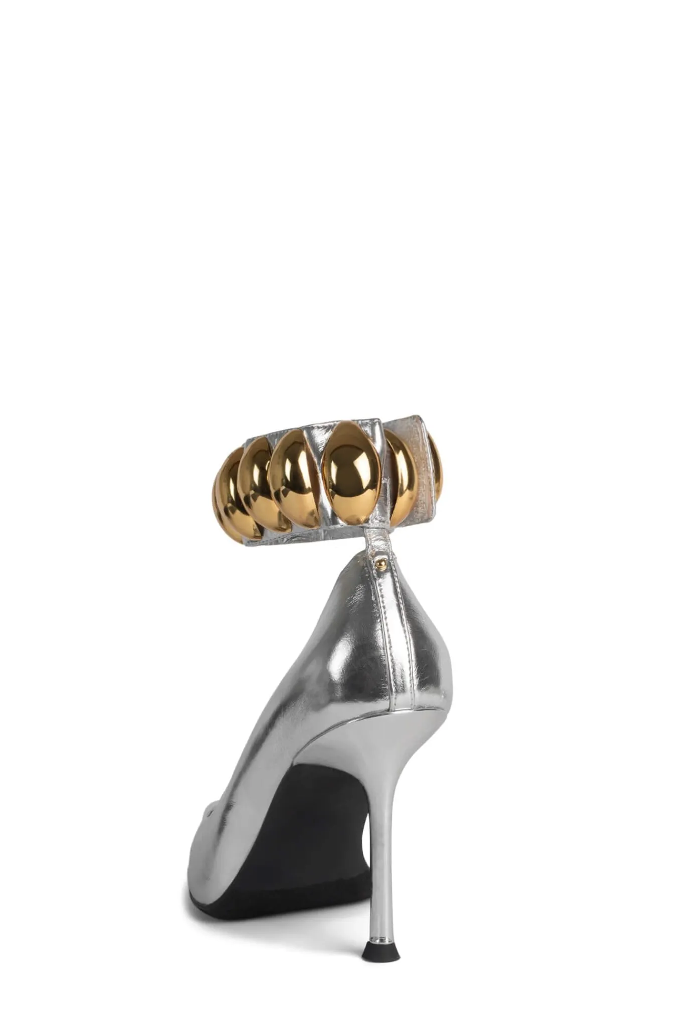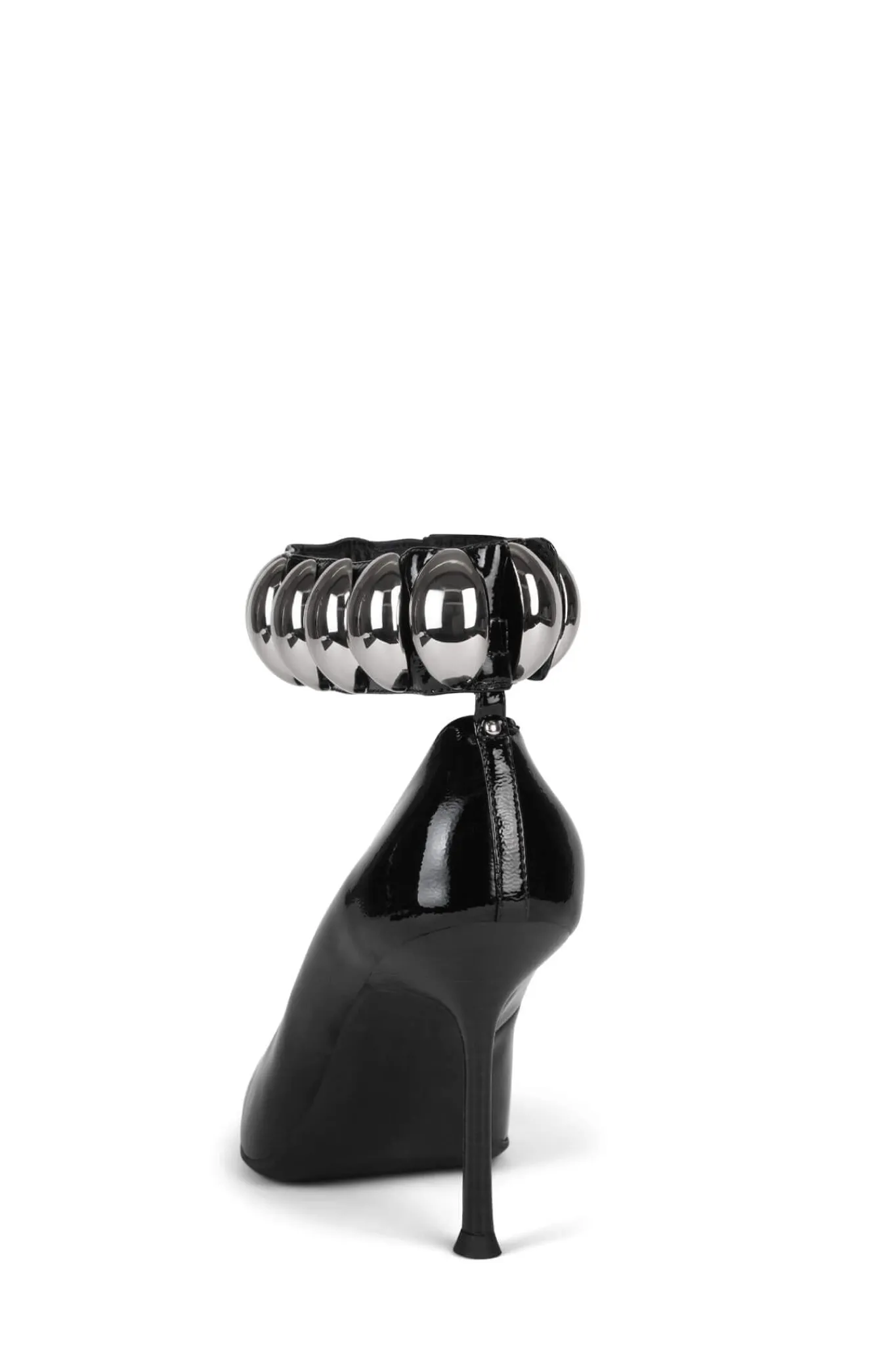 High-heel pointed-toe pump with metal-dome ankle strapFits true to size Measurements taken from size 73.75″ Heel, 0.25″…