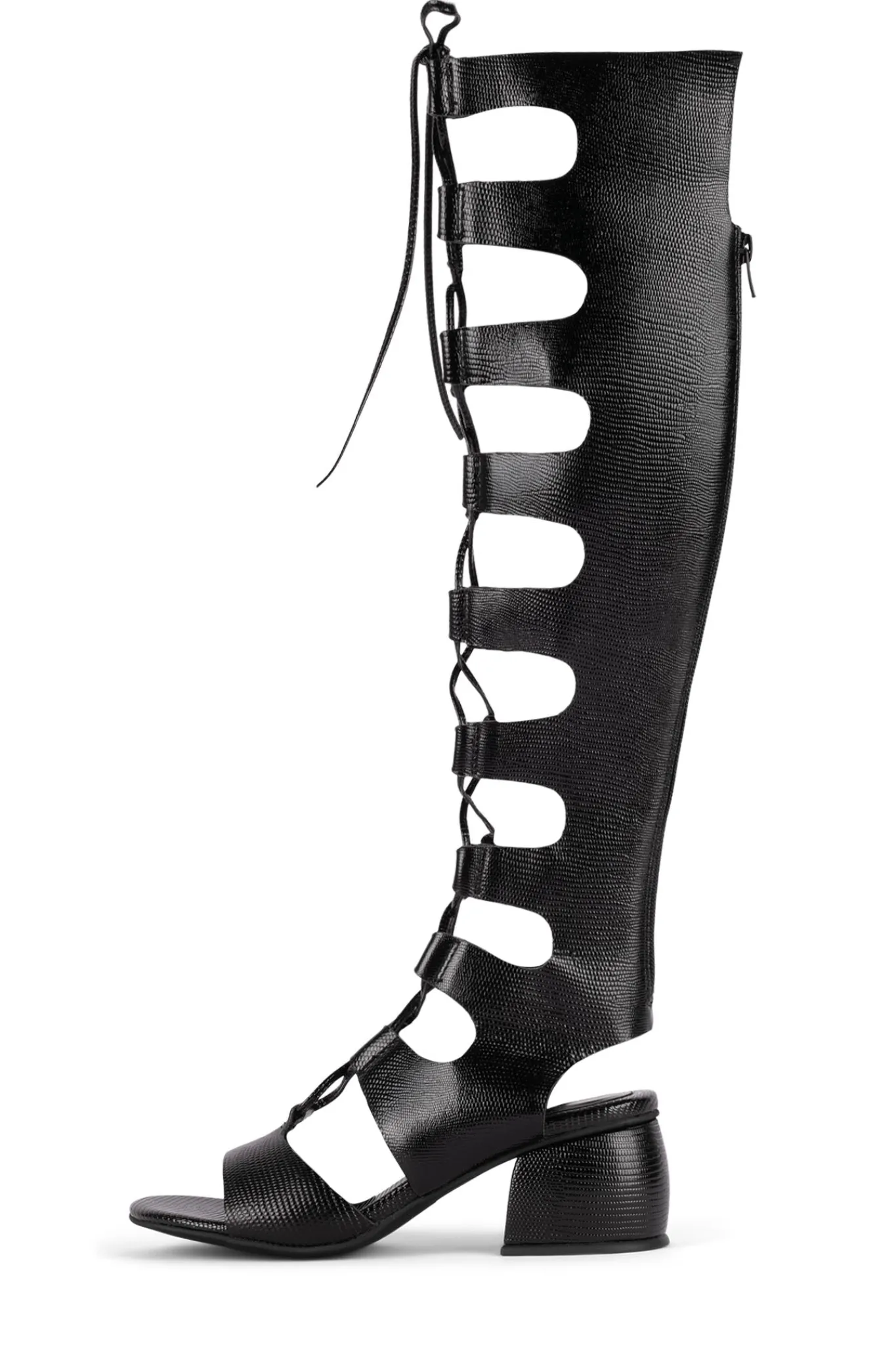 Lace-up block-heel gladiator boot.