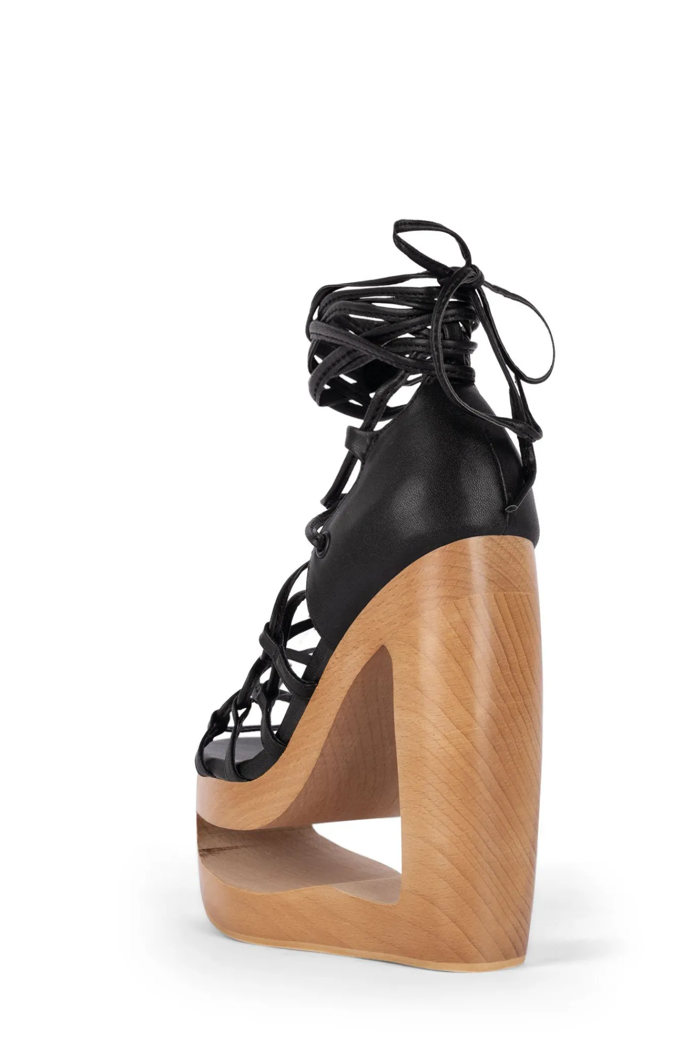 Strappy lace-up platform sandal with cut-out wedge.