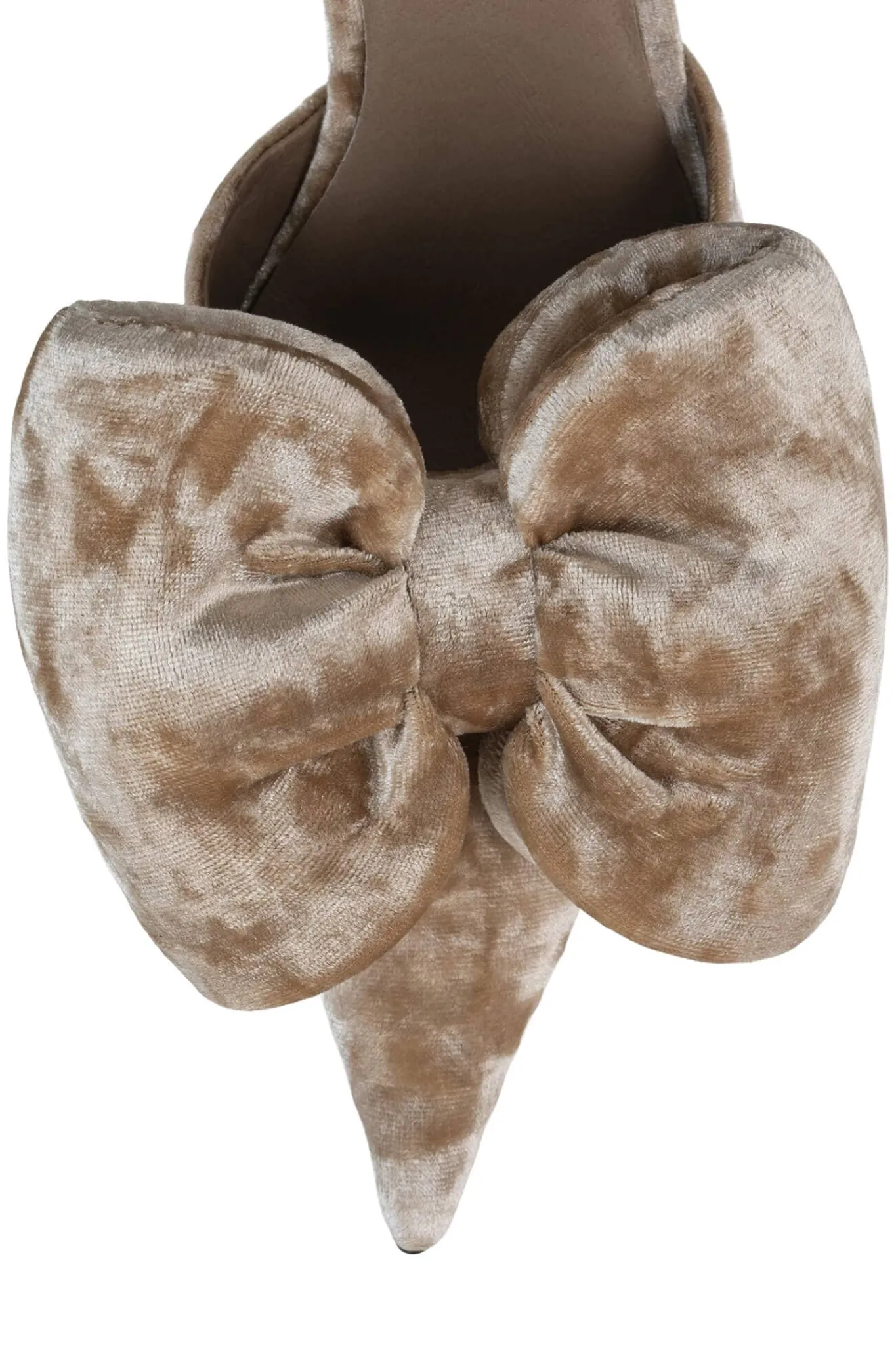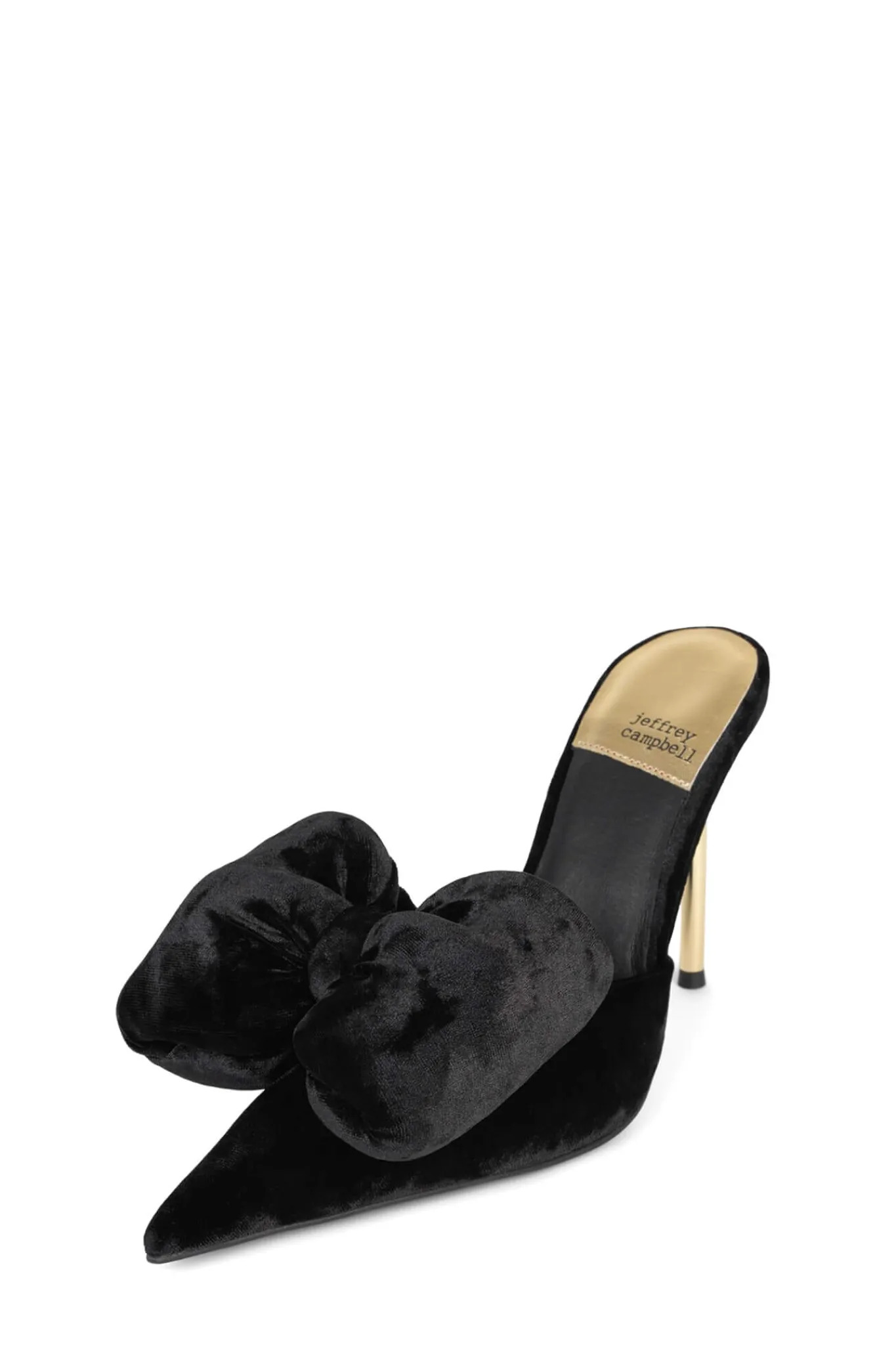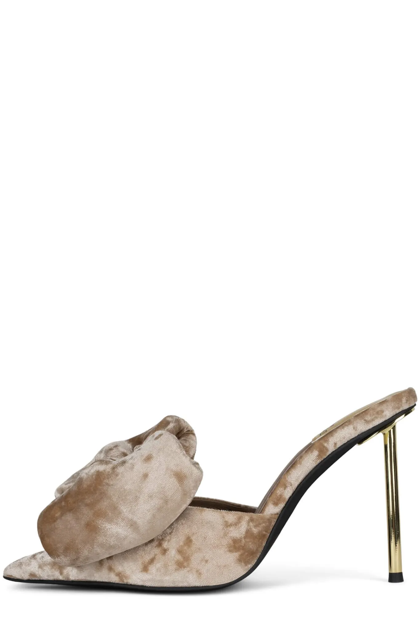 Pointed-toe pin-heeled mule with bow Fits true to sizeMeasurements taken from a size 7 4″ Heel, 0.25″ PlatformFabric U…