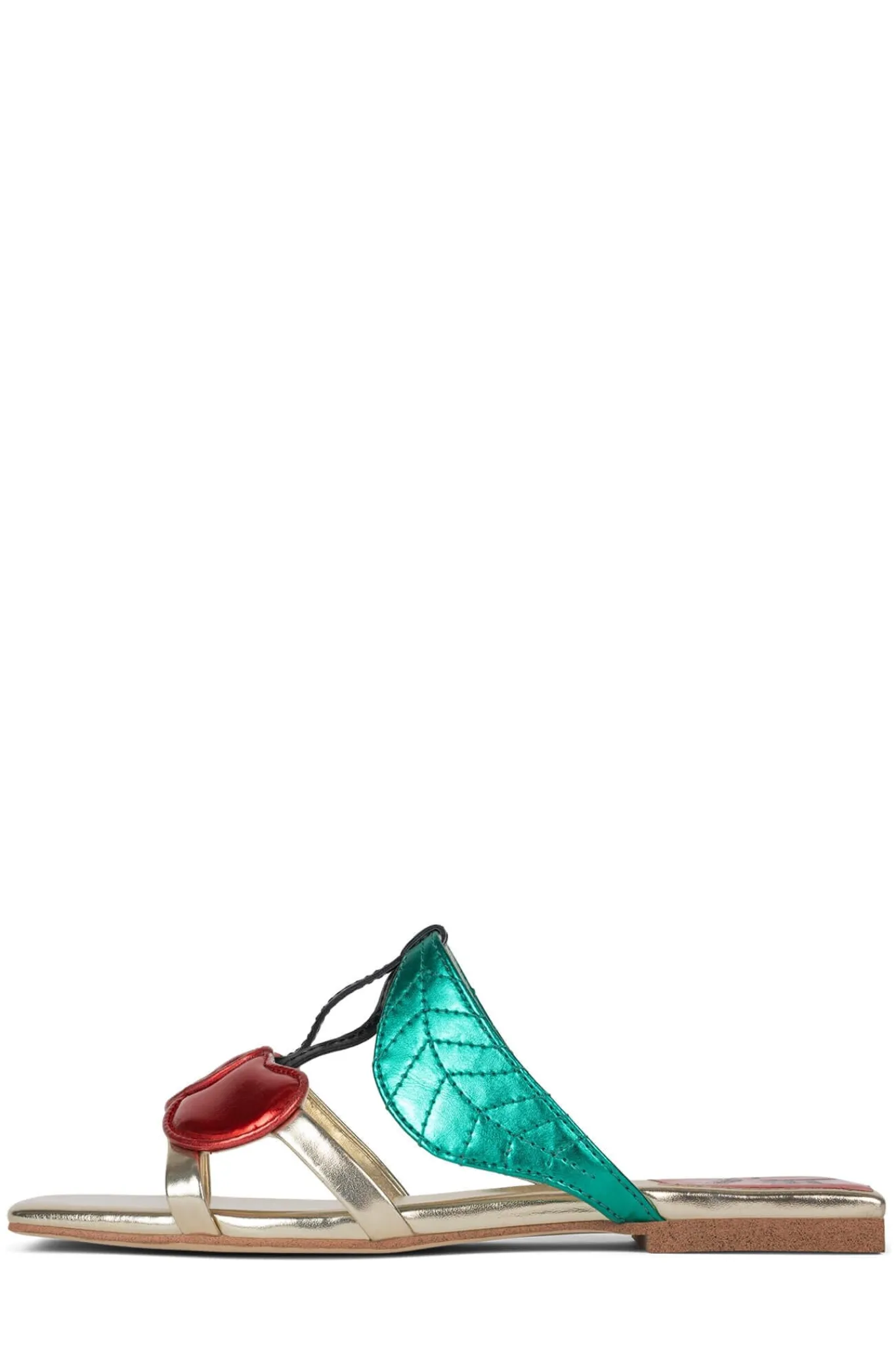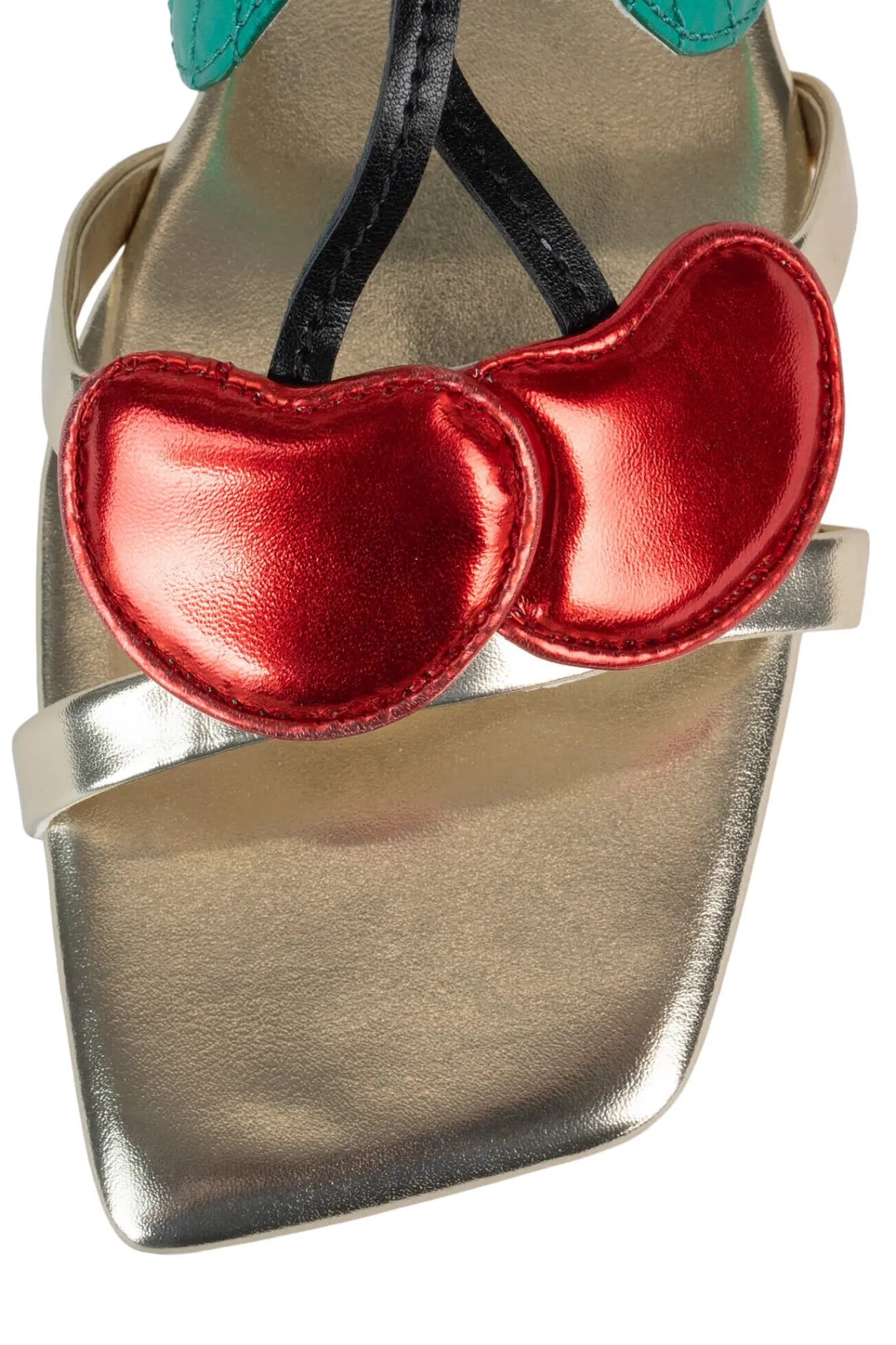 Square-toe flat sandal with cherry detail