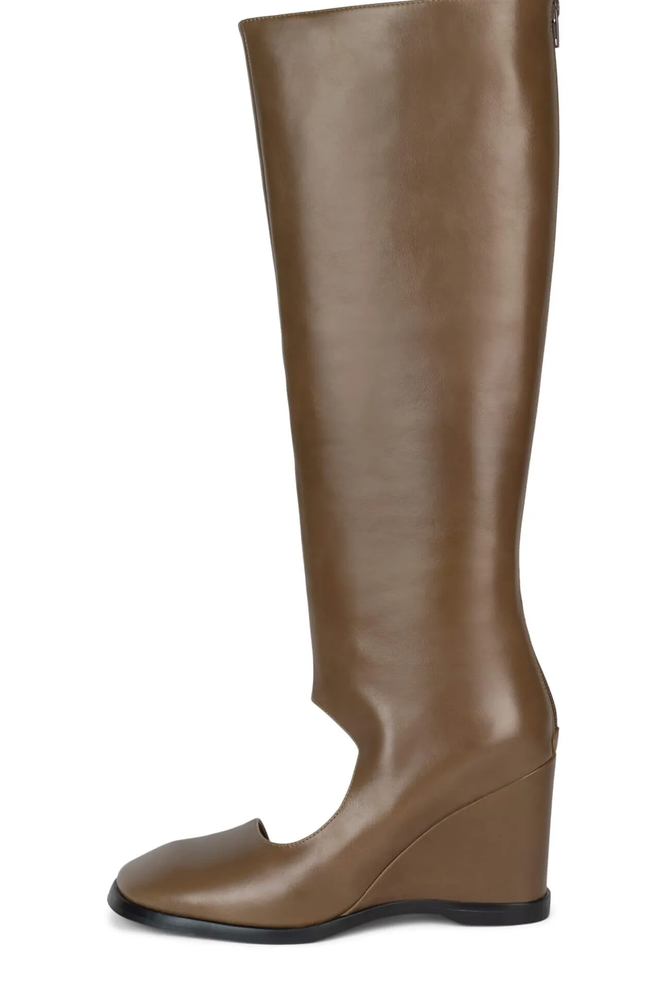 Cut-out knee-high wedged boot