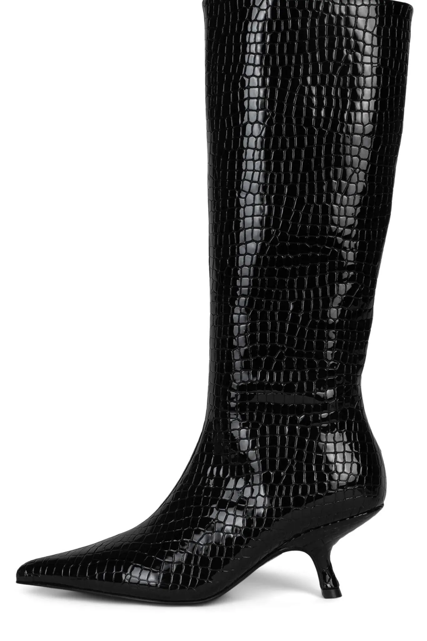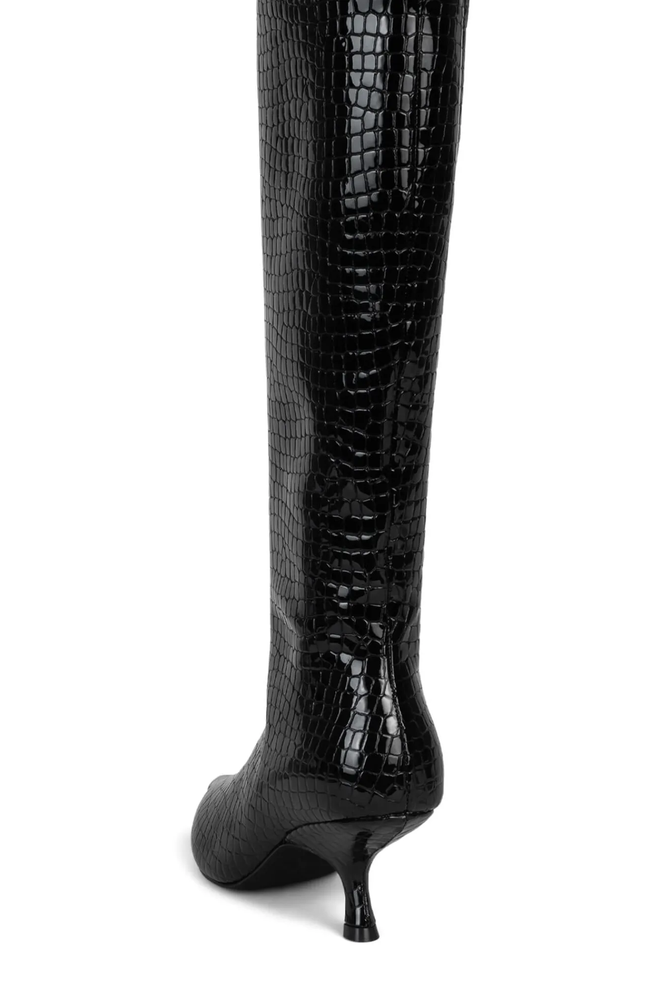 Pointed-toe knee-high kitten heel bootFits true to sizeMeasurements taken from size 7 2.65″ Heel, 0.25″ Platform14″ Sha…