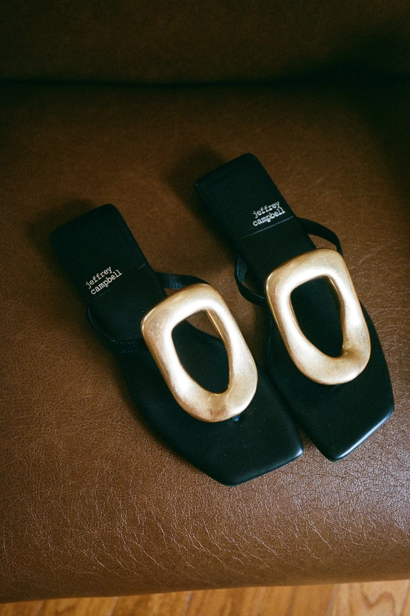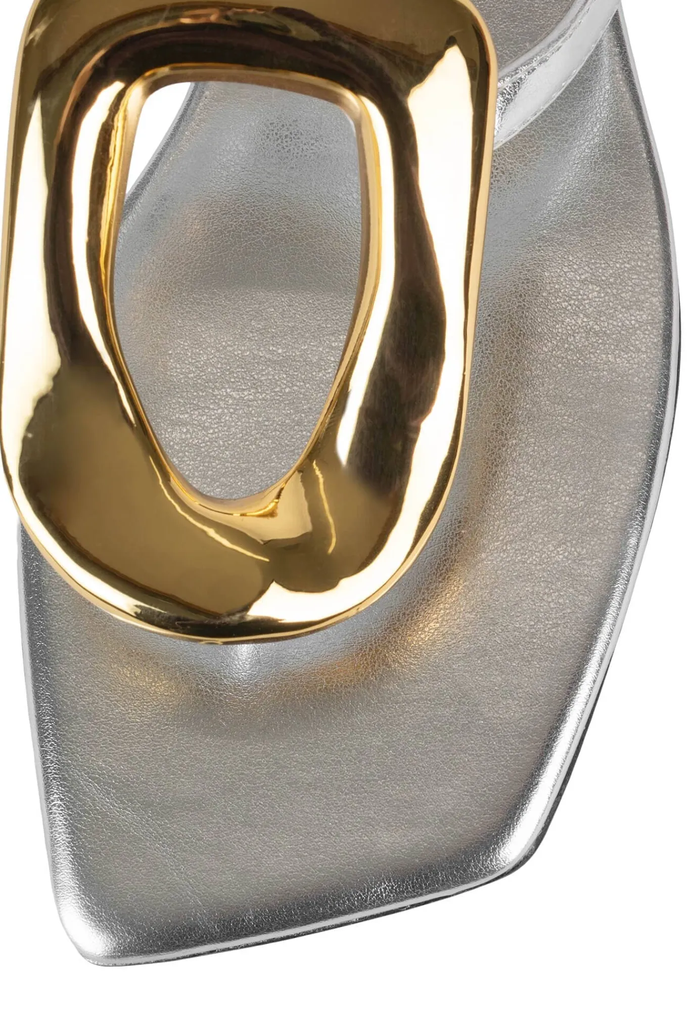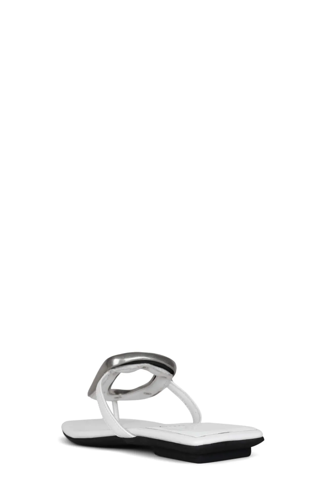 Flat thong sandal with metal embellishmentFits true to sizeMeasurements taken from a size 7Fabric upper, Fabric / Leathe…