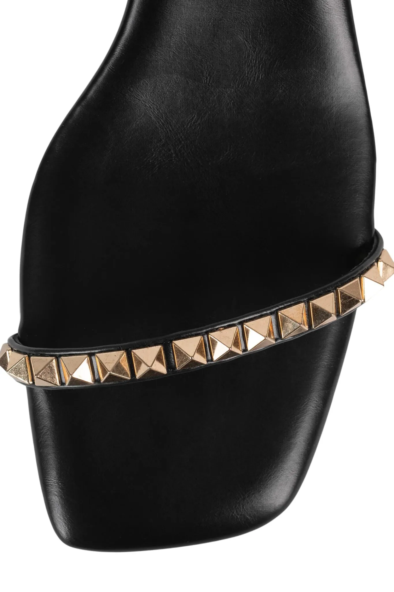 Studded strappy sandal with ‘missing’ heel
