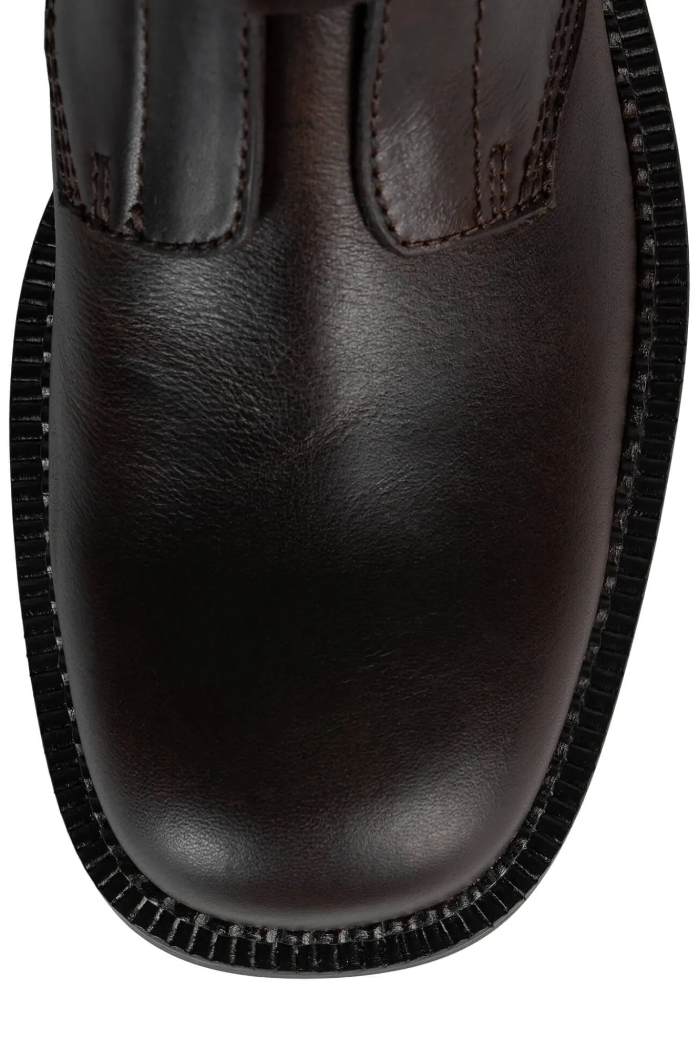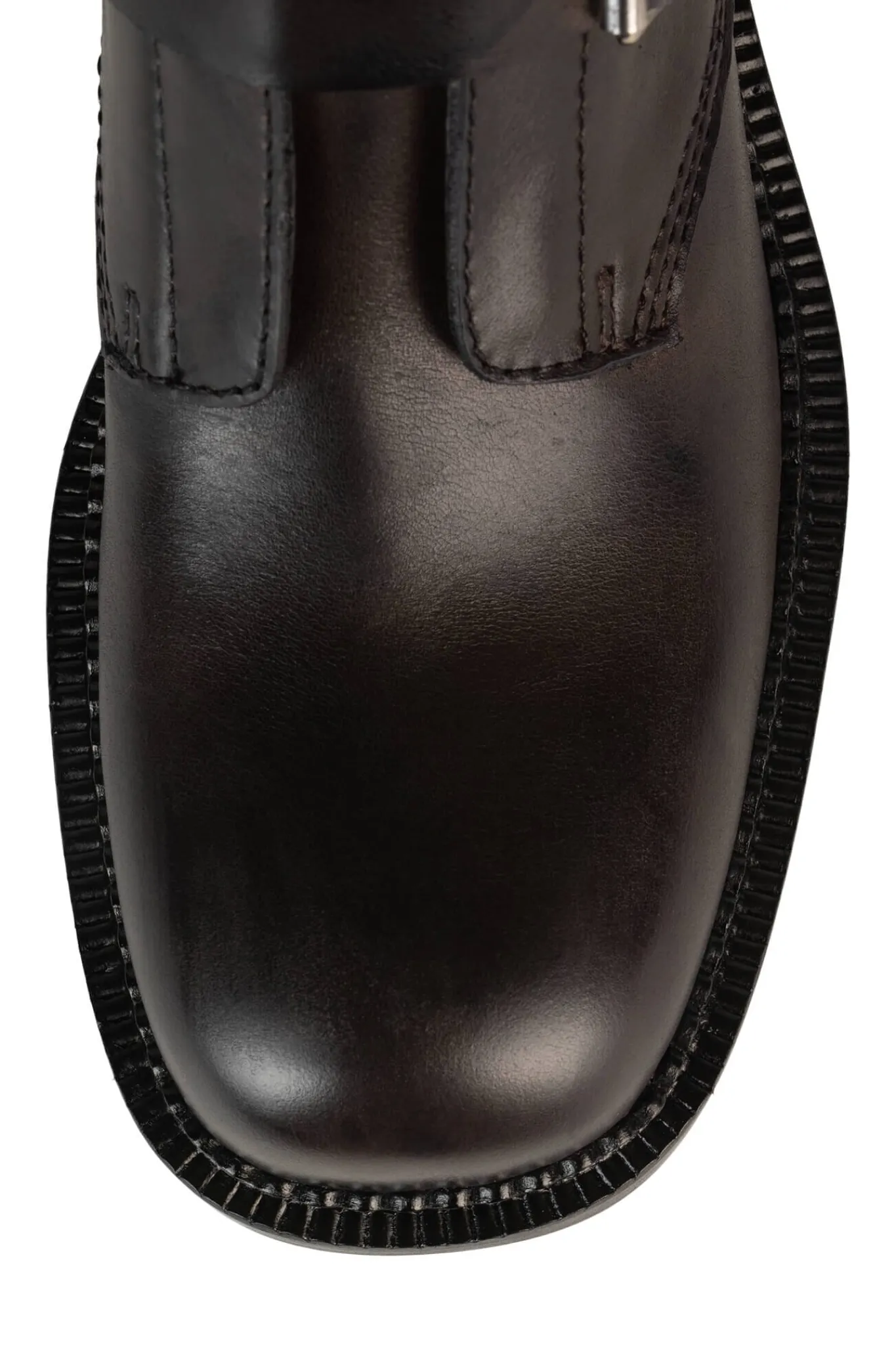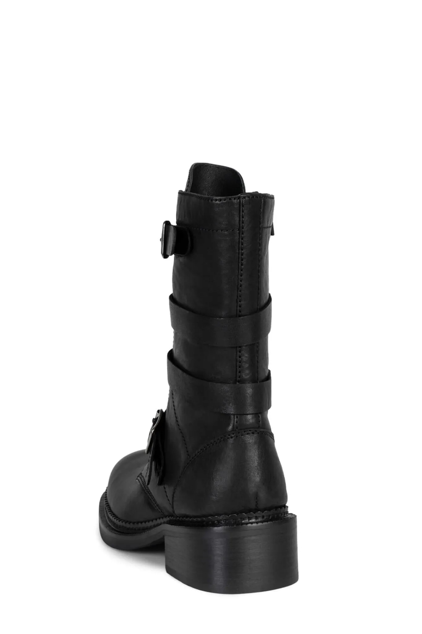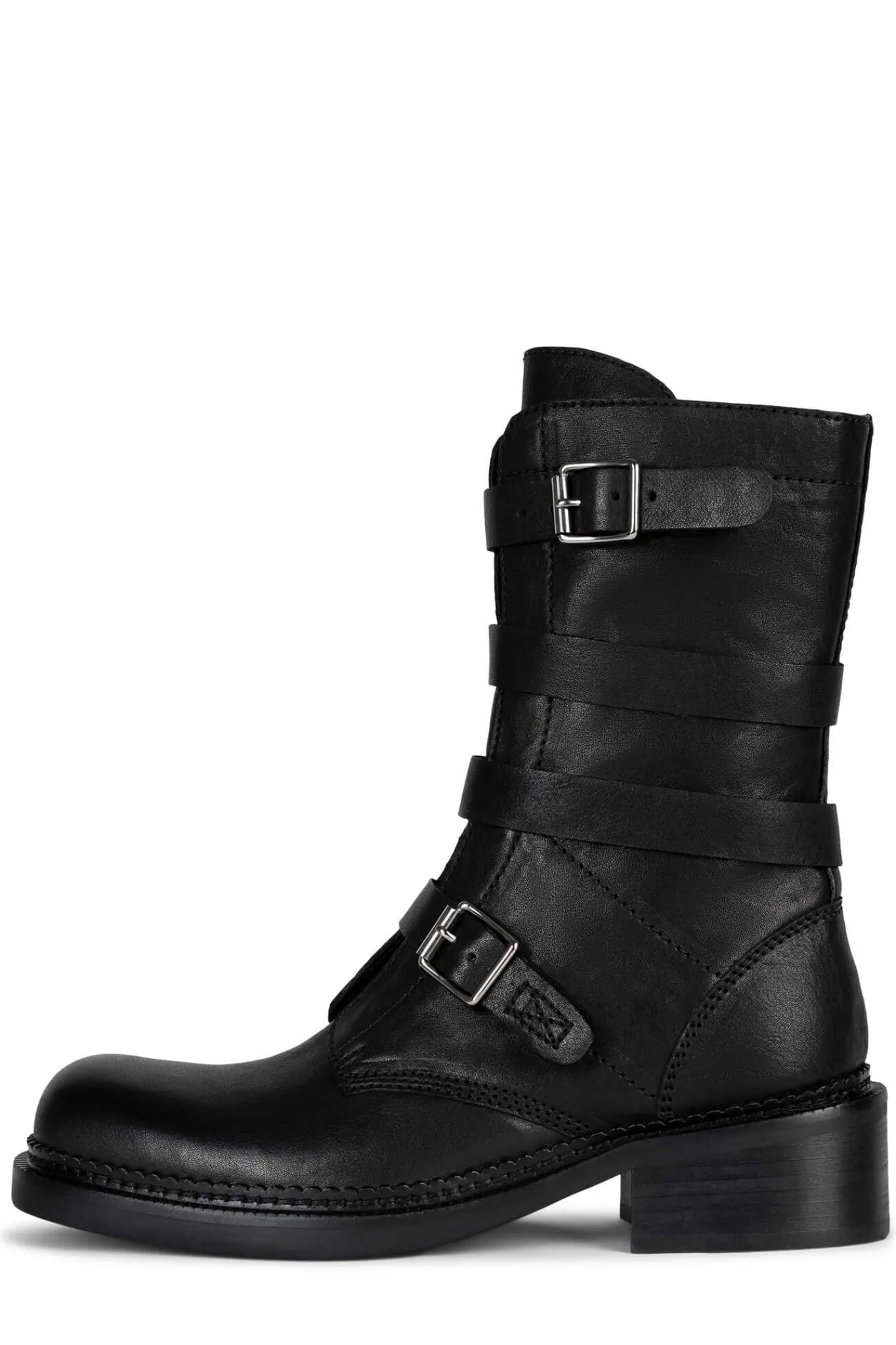 Mid-calf moto-inspired boot Fits true to sizeMeasurements taken from size 7 1.75″ Heel, 0.5″ Platform8″ Shaft, 10″ Leg…