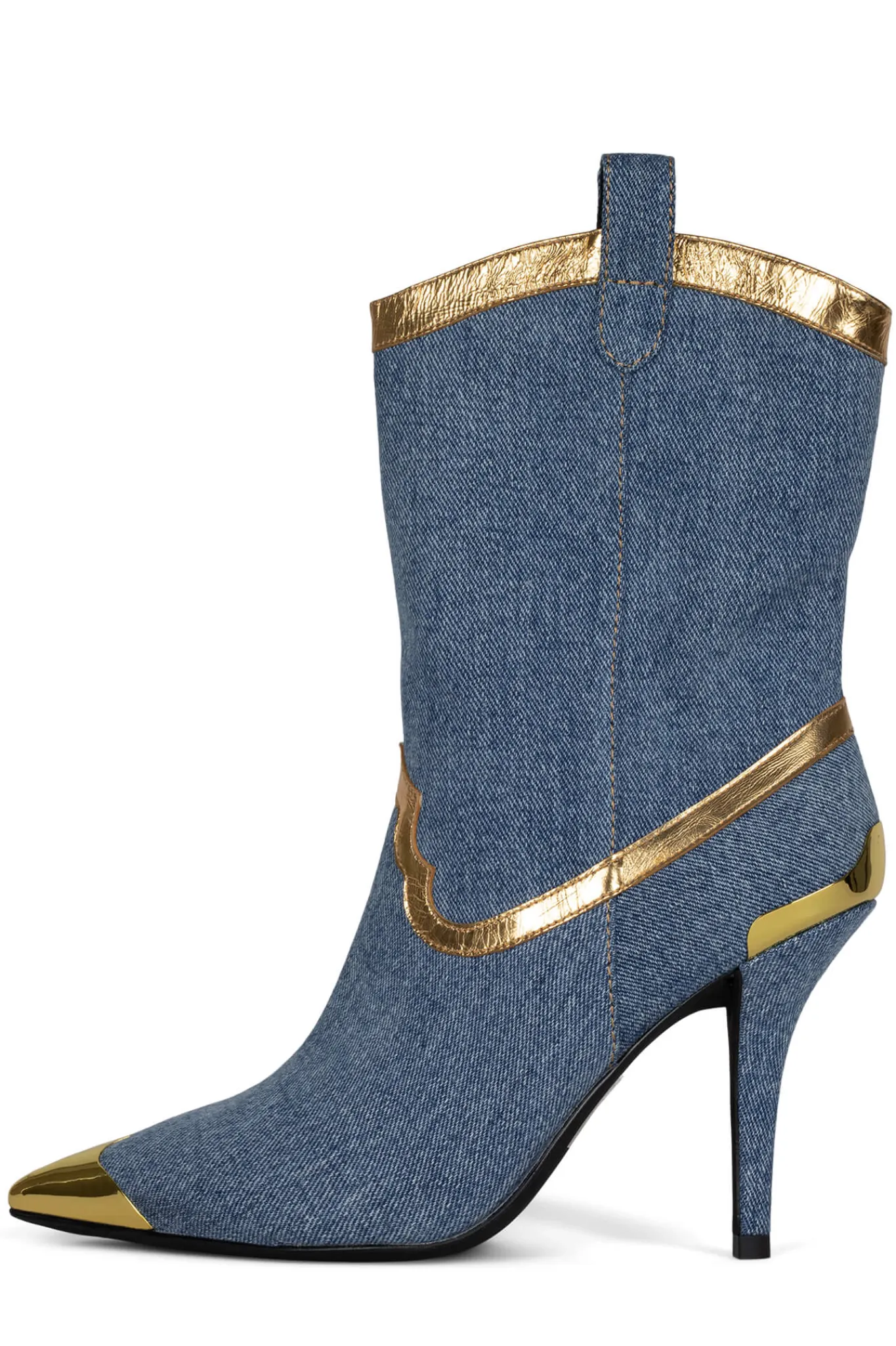 Stilleto mid-calf western-style stiletto boots with metal rands