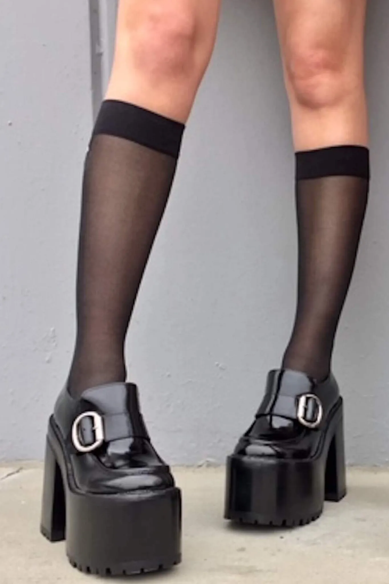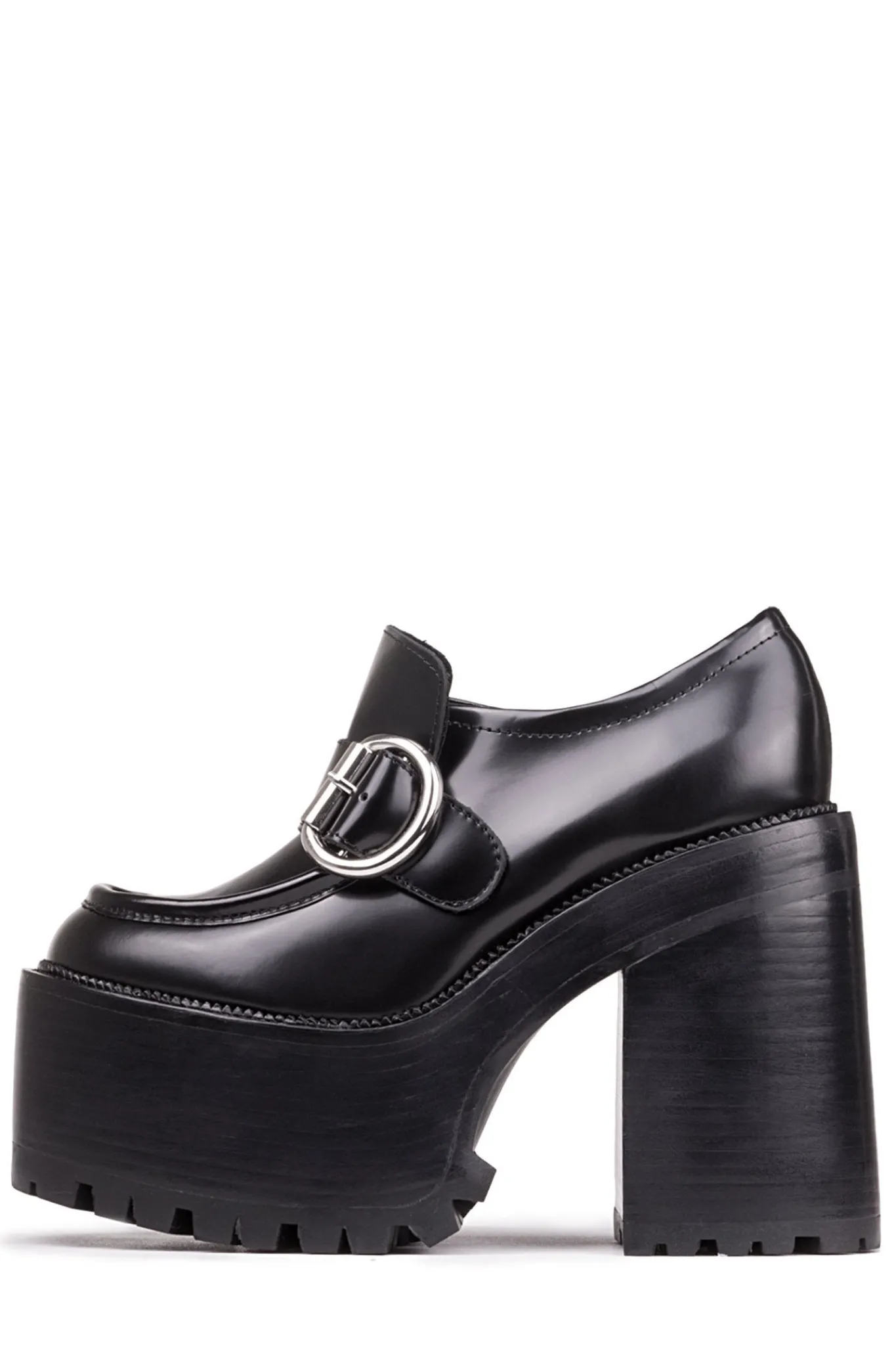 Platform chunky heeled monk-strap loafer.Fits true to sizeMeasurements taken from size 65.5″ heel, 3″ platformLeather up…