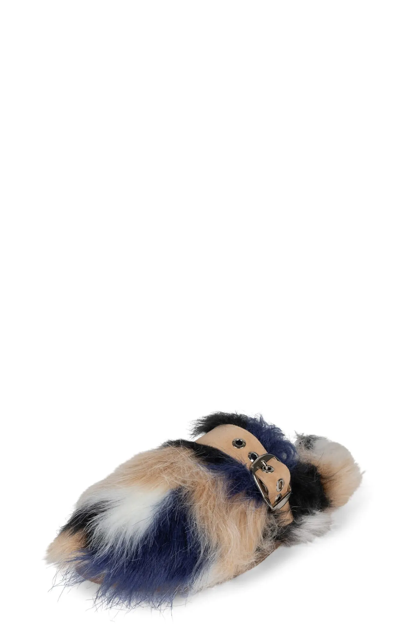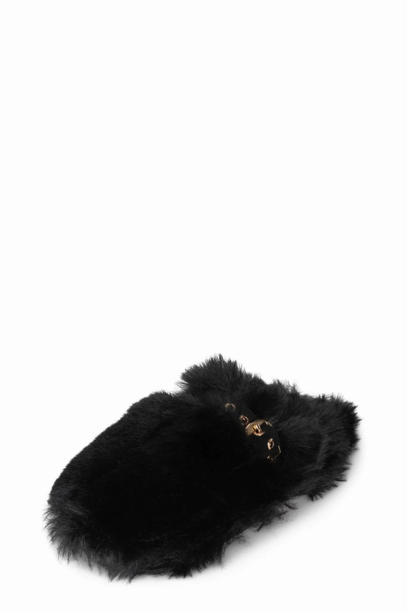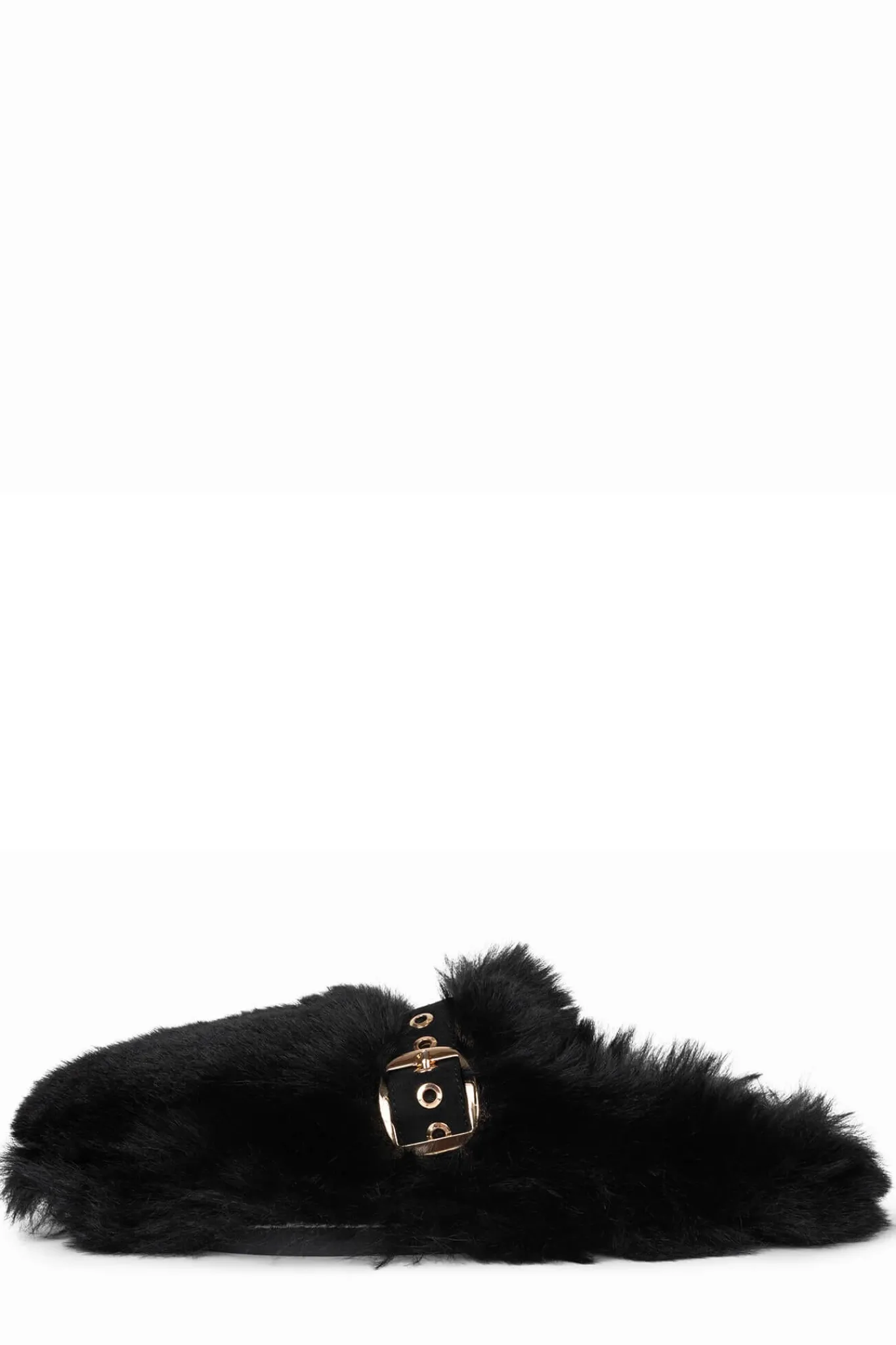 Faux-fur mule slide with buckle detail